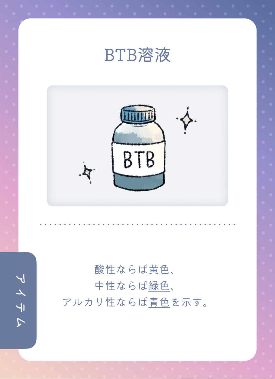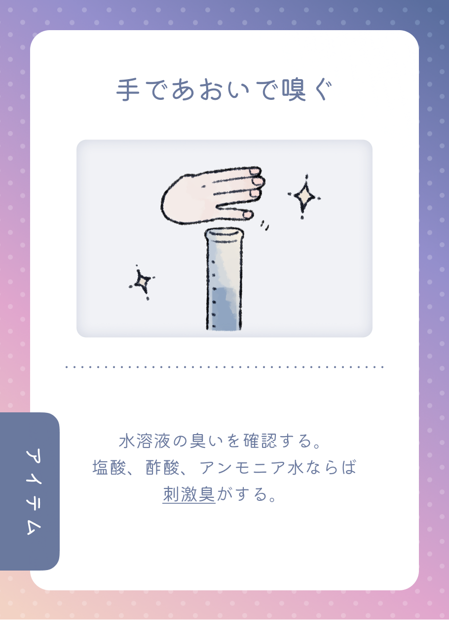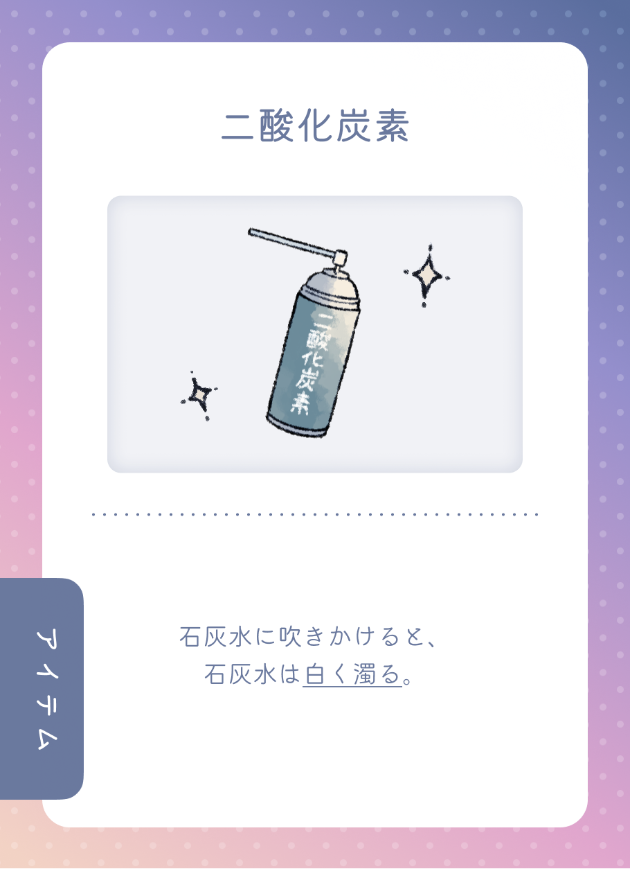 そして、こちらのアイテムカードに登場する試薬や実験方法も、すべて中学生までに学習する内容となっているため、記憶に残っている方も多いのではないでしょうか!?