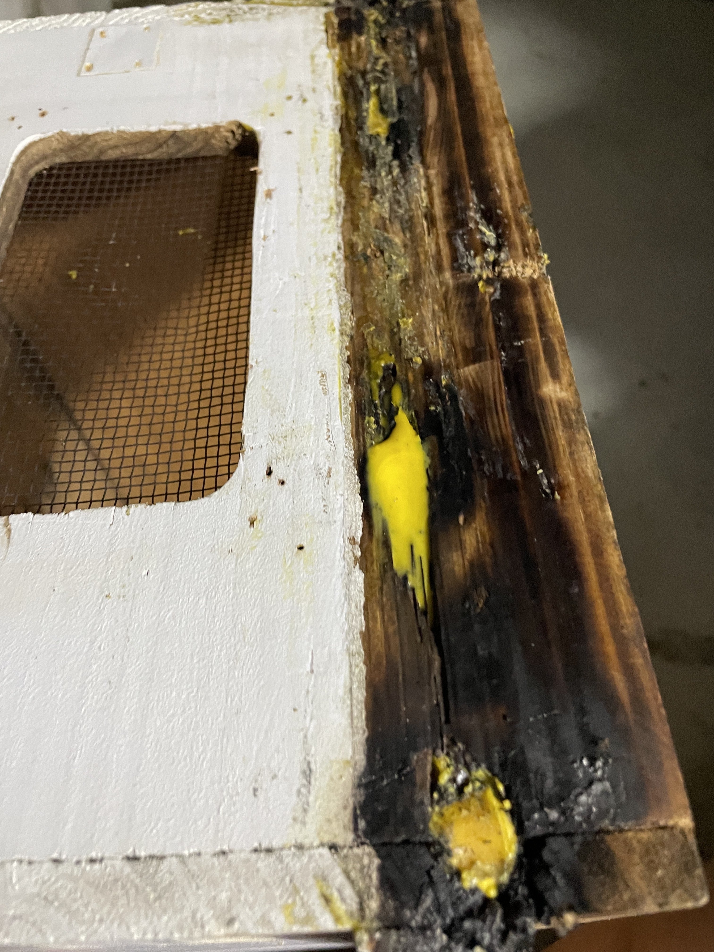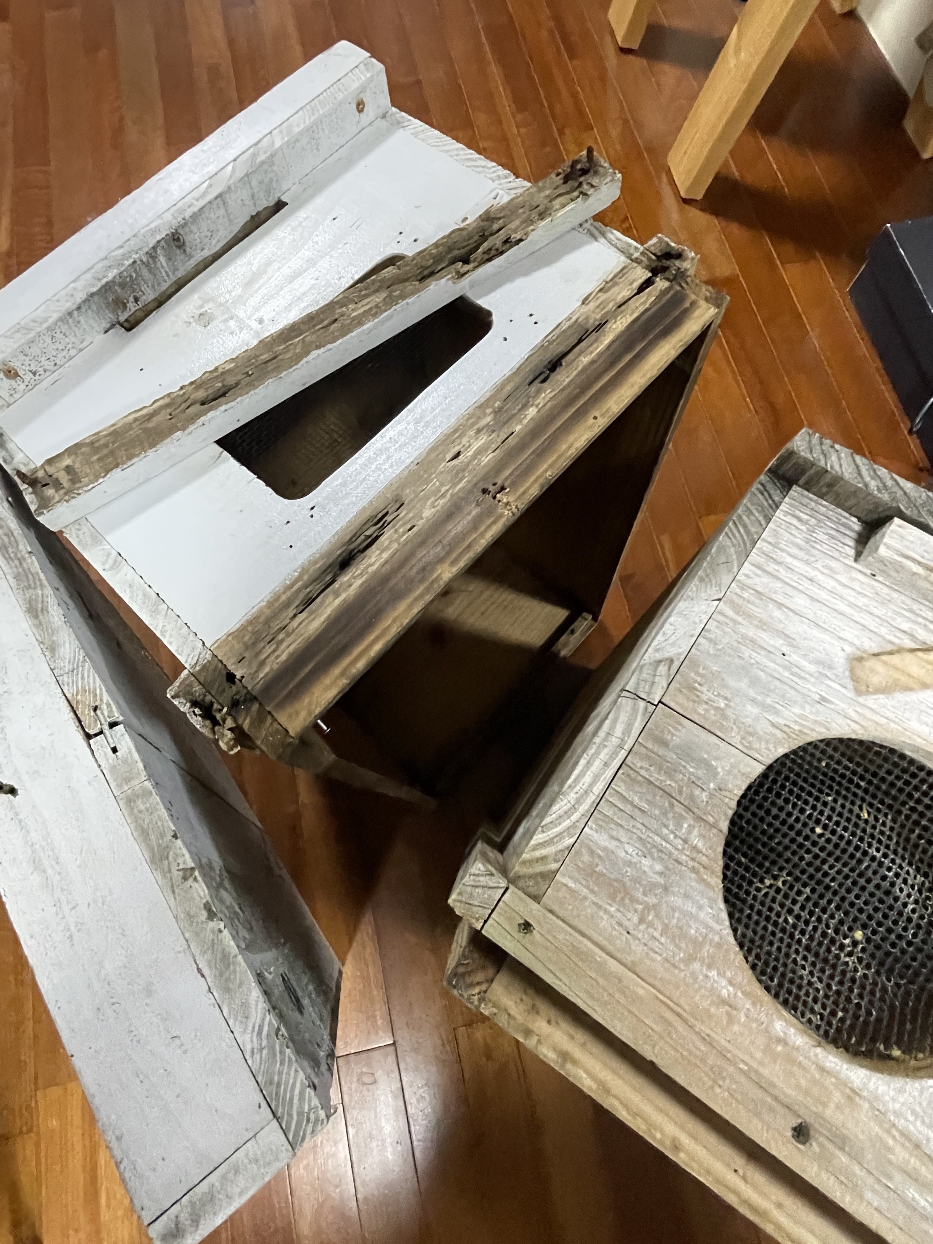 何回も直して使用していた痛々しい巣箱。5箱からスタートした僕の巣箱は、群れが順調に増え巣箱が増えていく喜びの傍ら悩みの種も増えました。