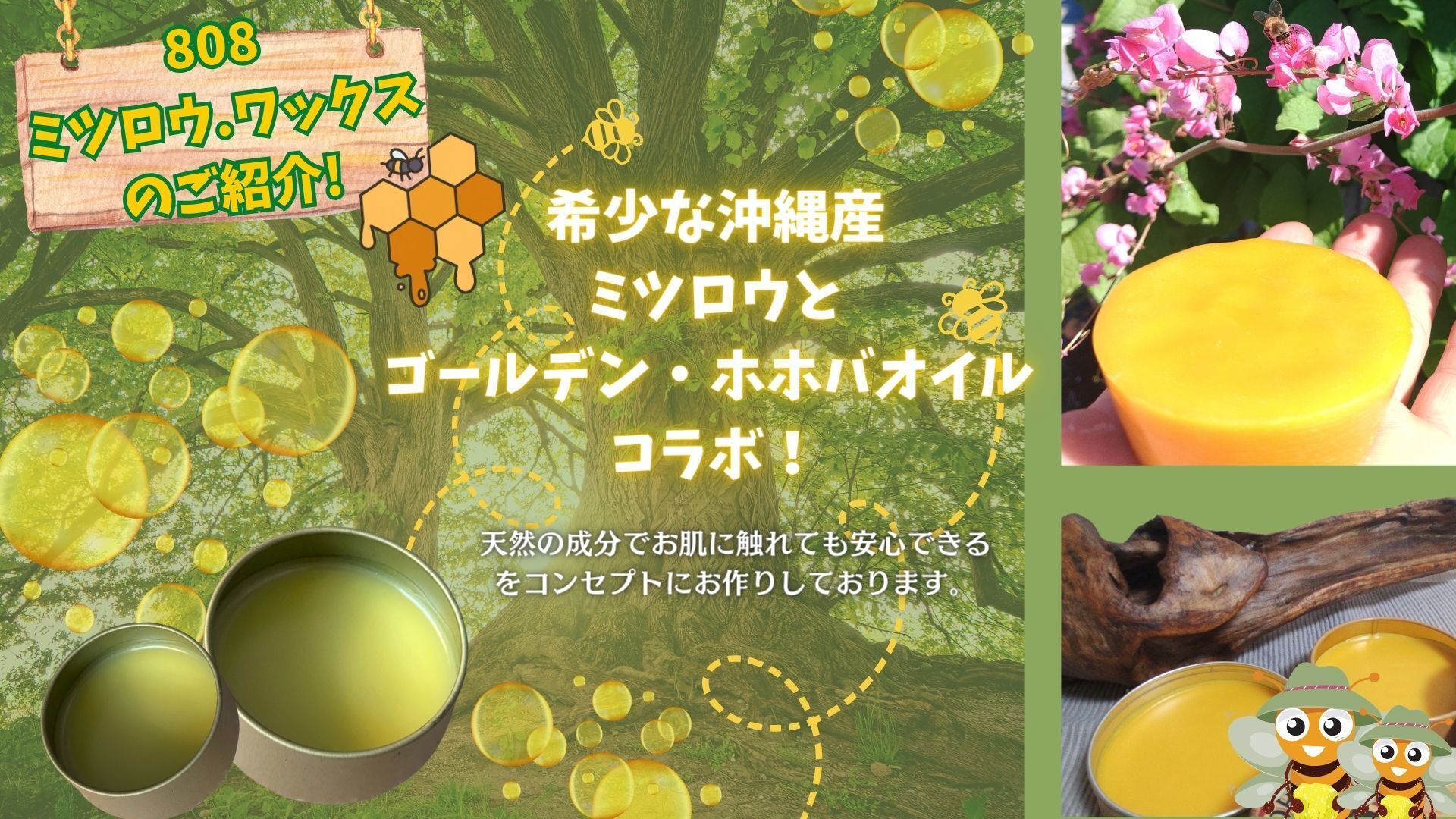 原 材 料:沖縄県産ミツロウ・ゴールデンホホバオイル・米油