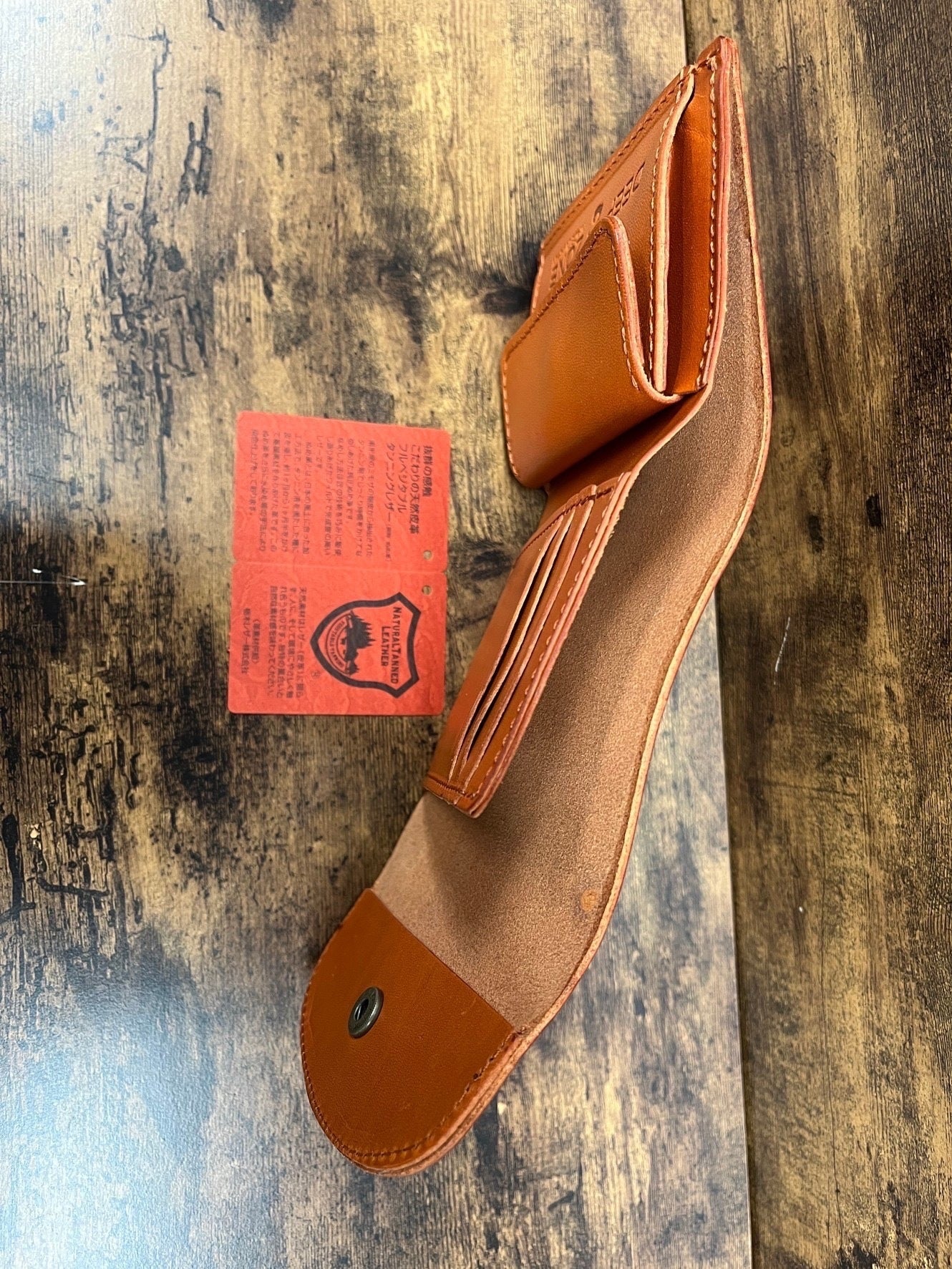革は栃レザーのヌメ革(使えば使うほど経年変化が楽しめる)