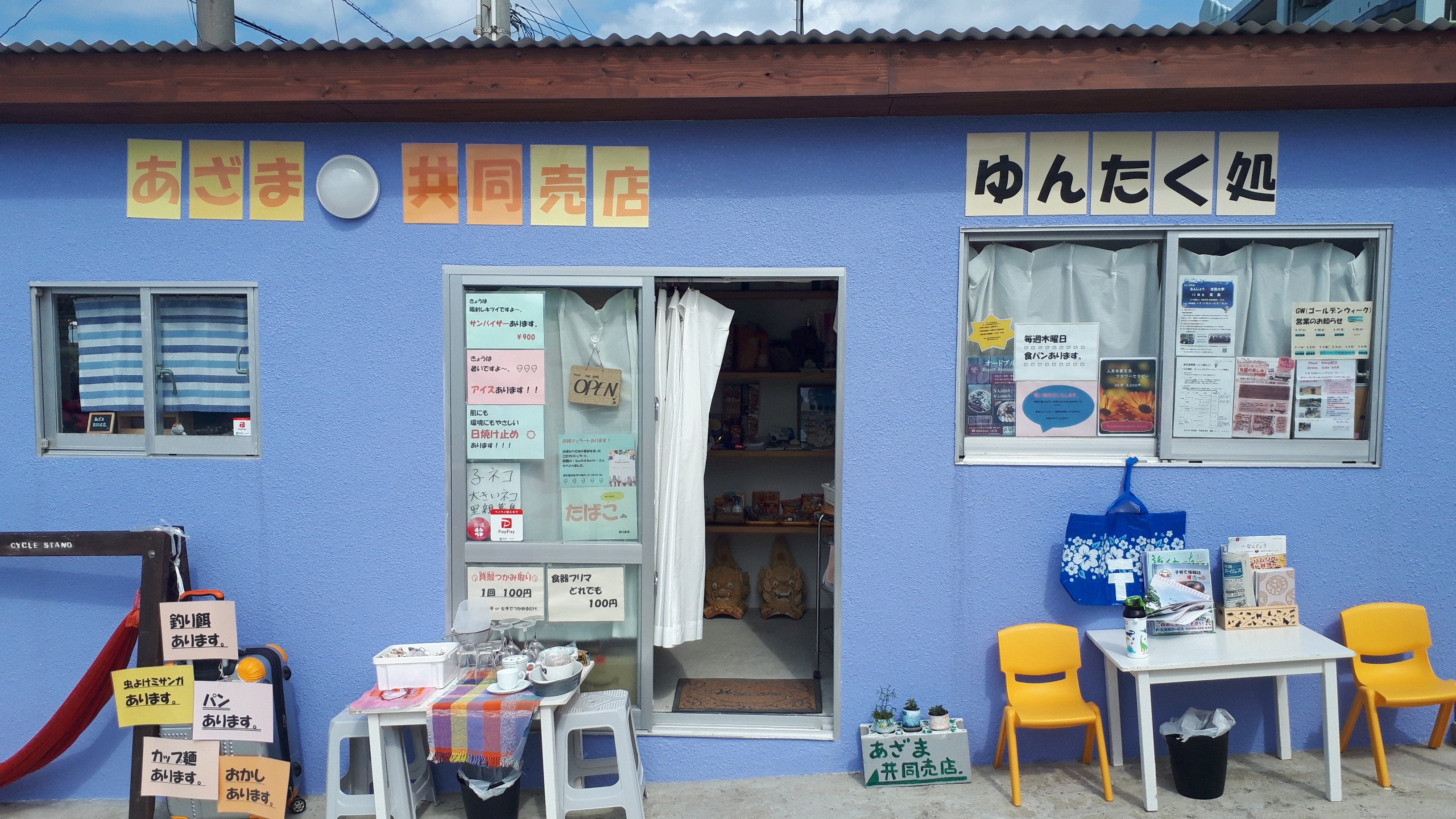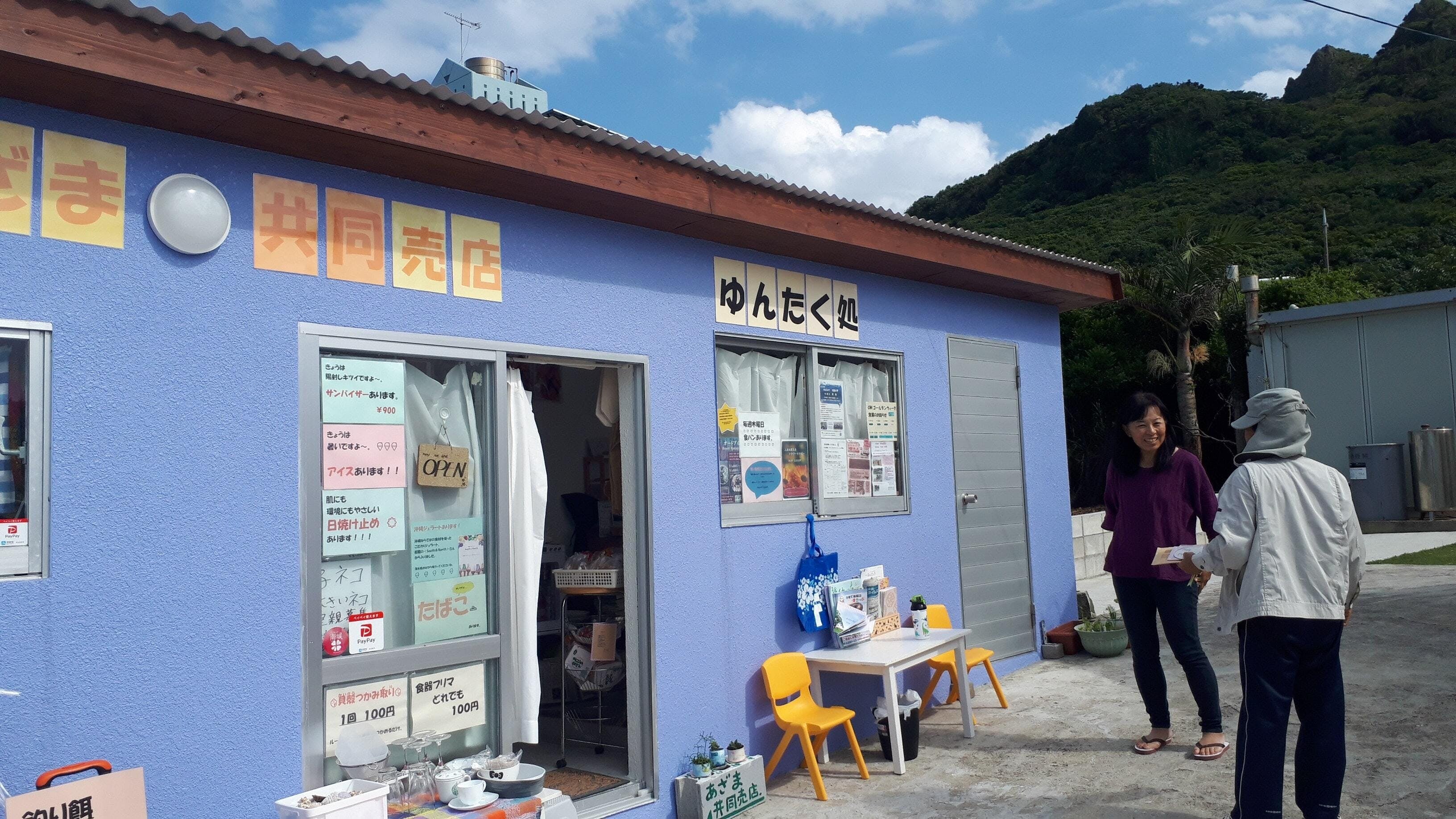 あざま共同売店は、地元の人と観光で訪れた人が交流できるあったかい空間になればという想いで、店主の藤原明美が沖縄県の南城市安座真に移り住み2018年11月4日に開店しました。