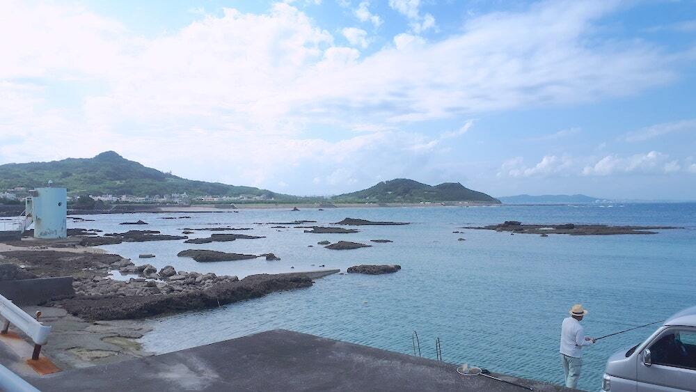 安座真の前に広がる海晴れた日には久高島はもちろん、勝連半島、津堅島も遠くに見えます