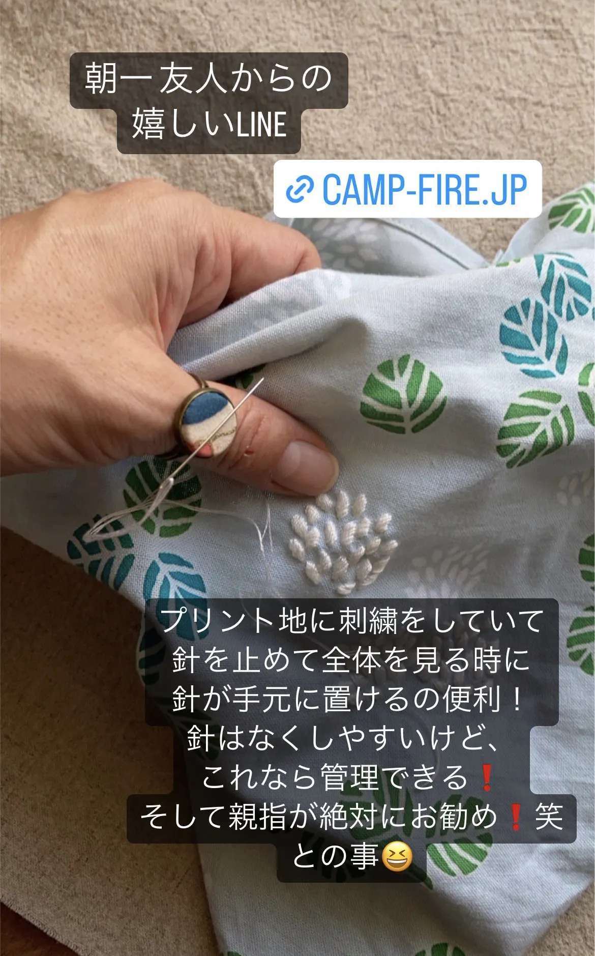 クラウドファンディングのページにも登場している 友人で刺繍家のYさん
