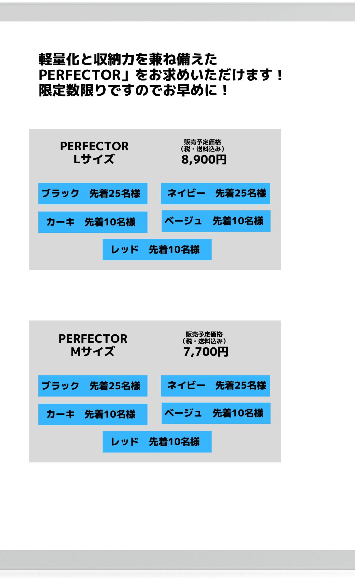 そんな時にシンプルなデザインで使い勝手がよく、収納性や耐久性にも優れている「PERFECTOR」に出会い、すぐにこれだと取り扱いを決めました。