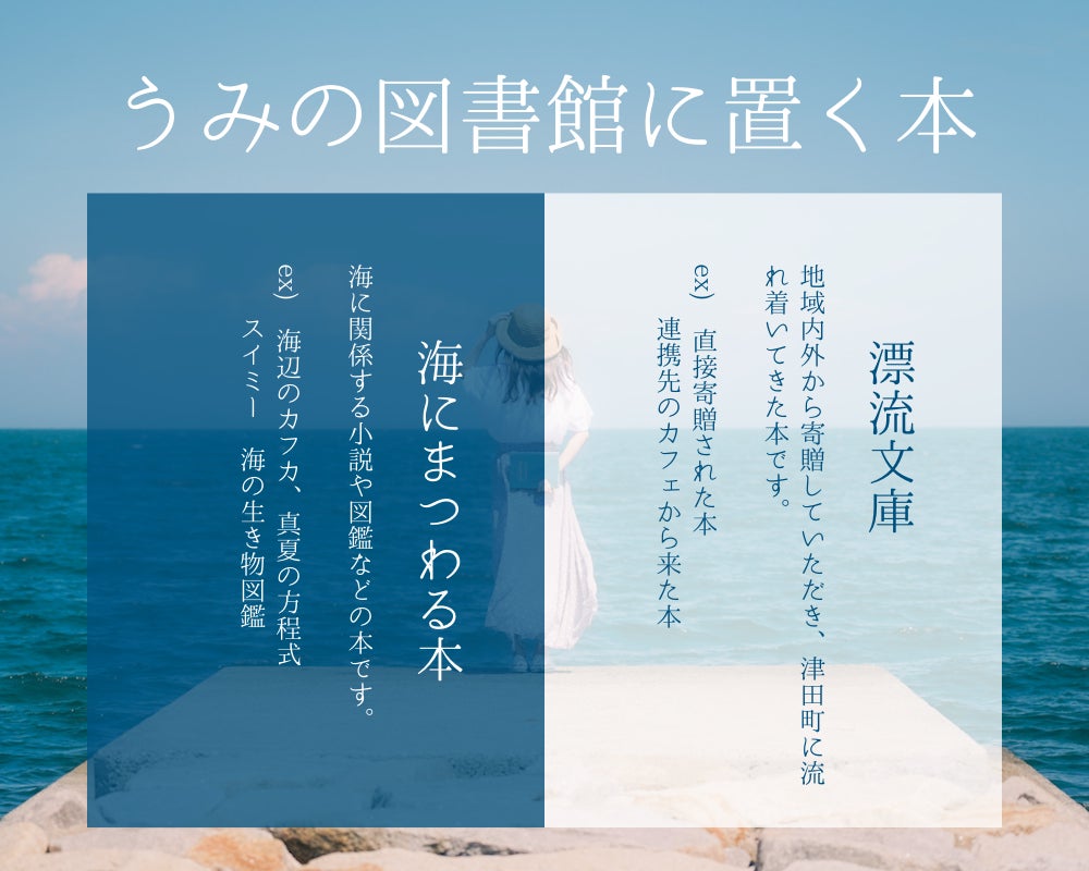 具体的には、「海にまつわる本」と「流れ着いてきた本(漂流文庫)」の2種類です。