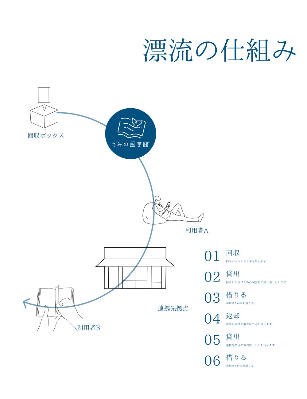 例えるなら、各地にある連携拠点は本が漂流する海であり、漂流している本を手に取ることができる波打ち際でもあります。そして、みなさんから寄贈していただいた本は瓶に詰められた手紙です。