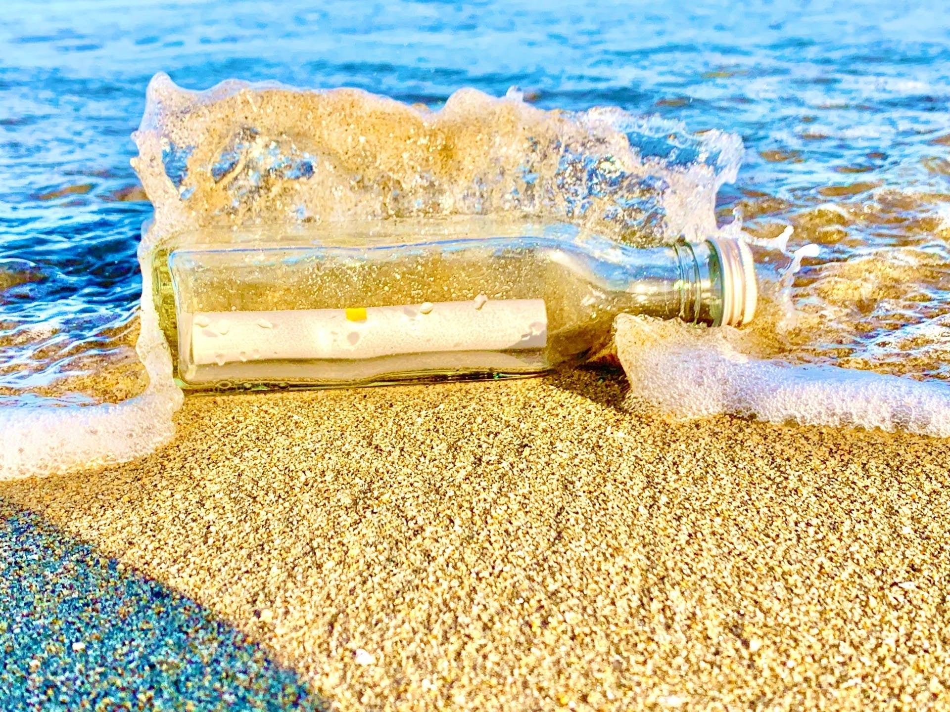 おそらく一度はドラマや映画で見たことのある手紙の入った小瓶を海に流すあれです。