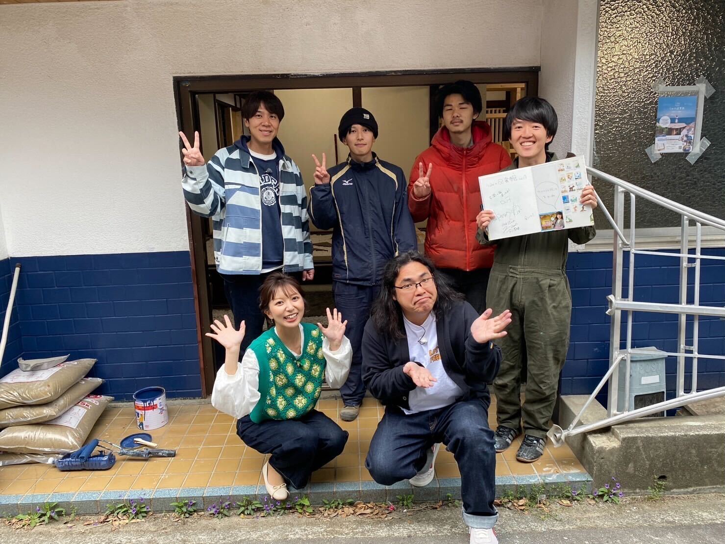 まだまだ工事中の時期の撮影だったので、ロッチのお二人と今川アナにDIYを手伝っていただいております。