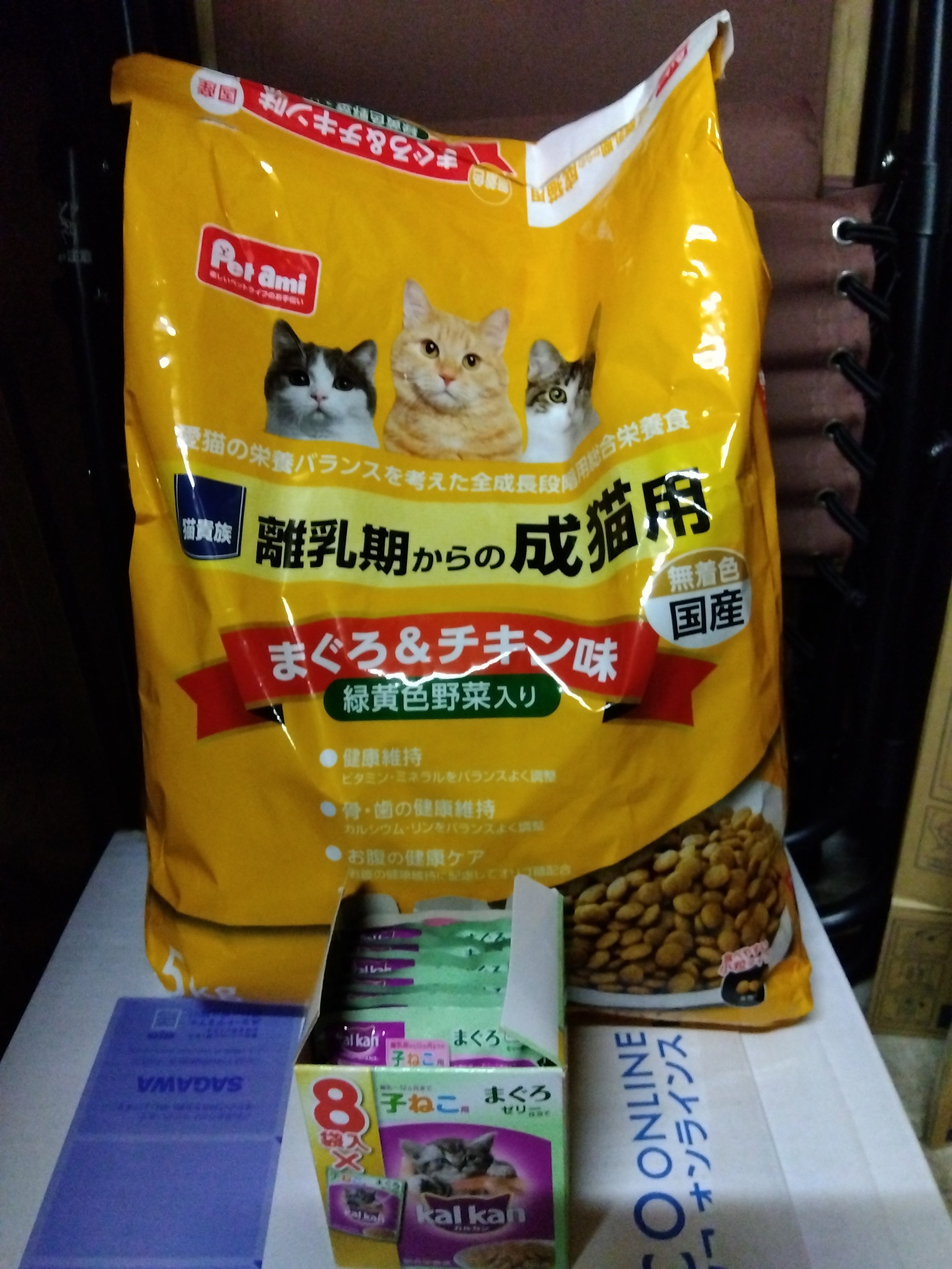去年、うちで産まれた子猫の里親になった下さった方が、キャットフードを寄付して下さいました。