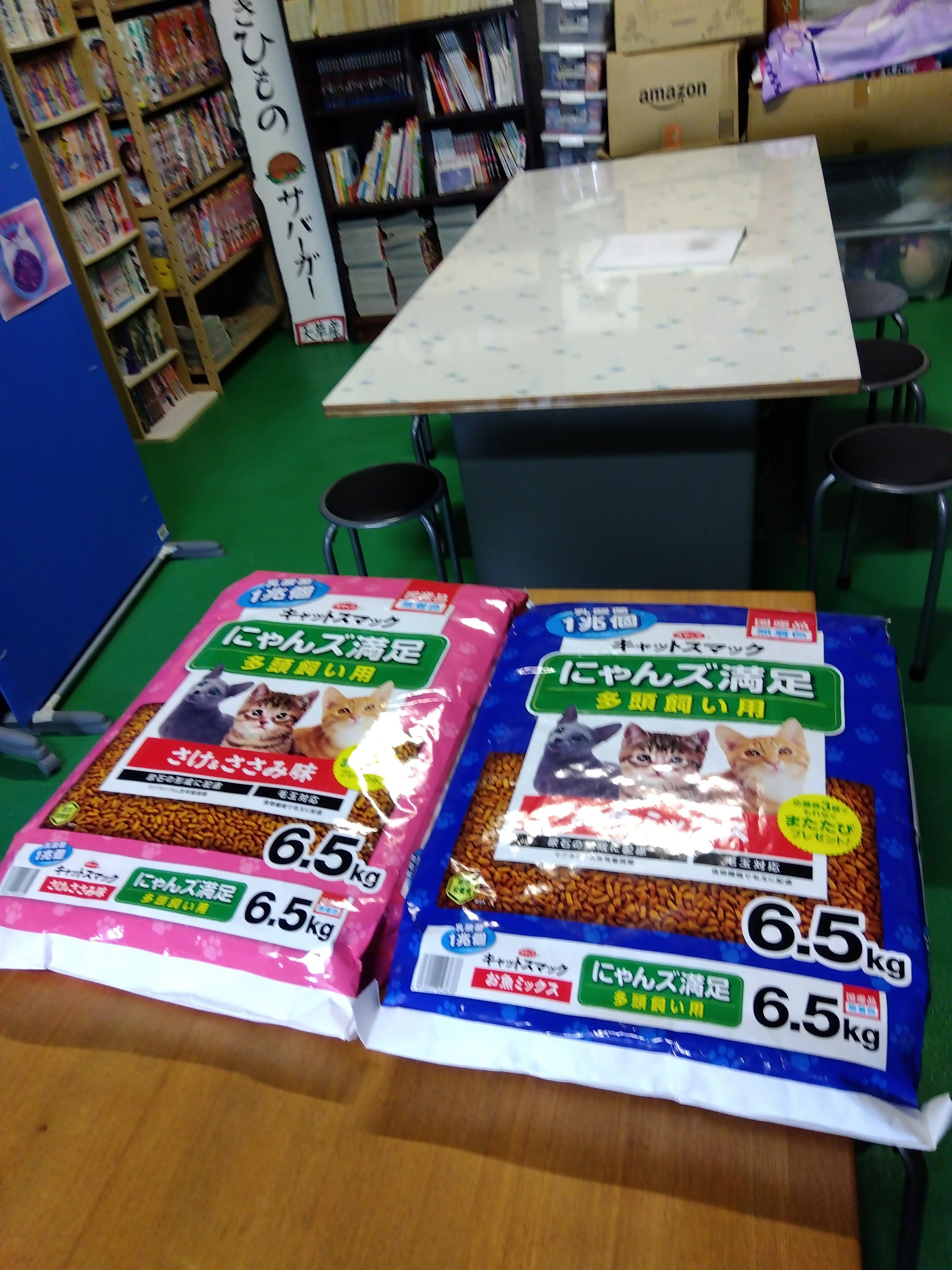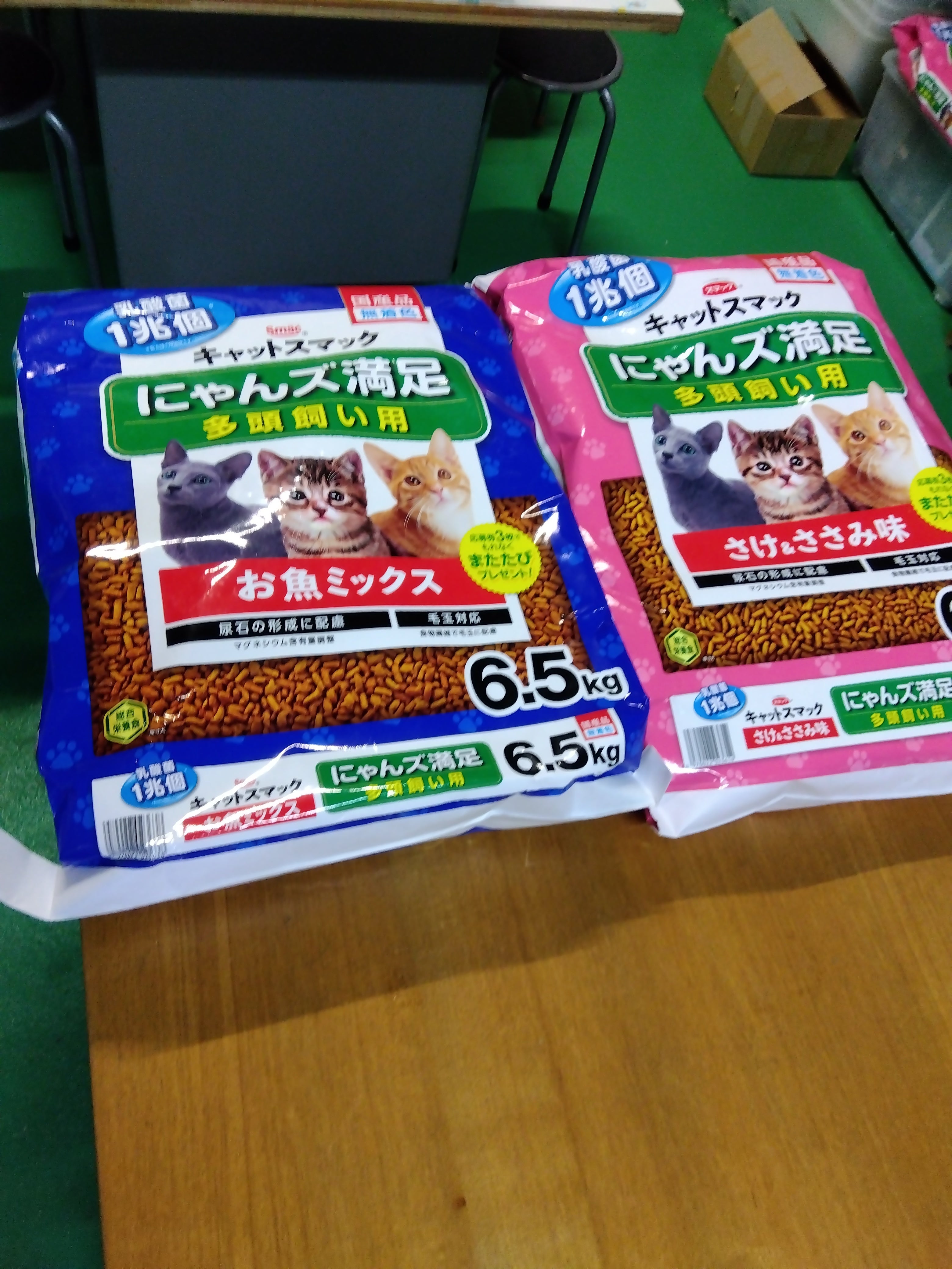 キャットフードが届きました!にゃんズ満足さけ&ささみ6.5kg☓1にゃんズ満足お魚ミックス6.5kg☓1A,H様、有り難うございました。秋になり、猫たちはよく食べるようになってきているので助かりますm(_ _)m