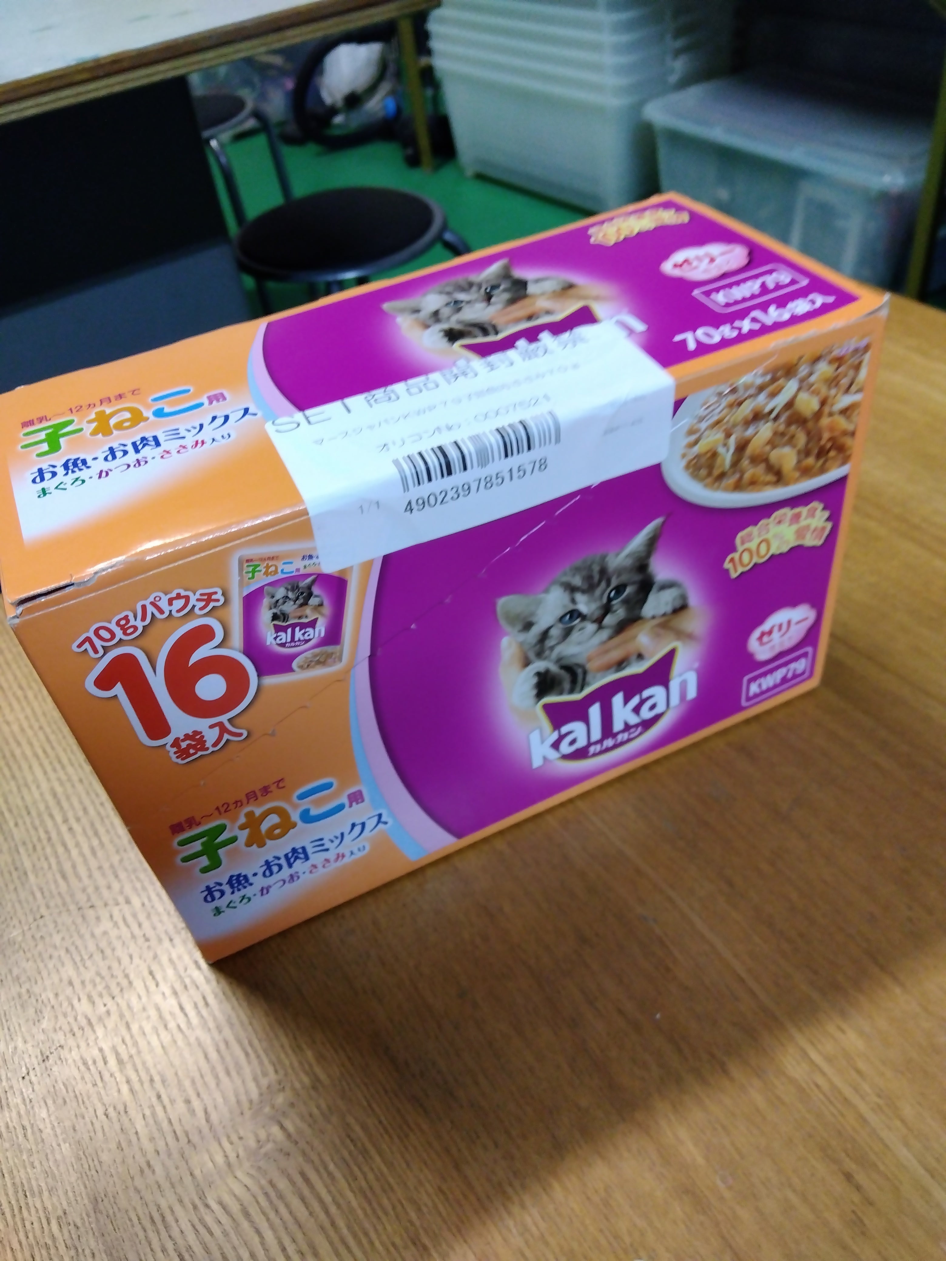 キャットフードが届きました!カルカンパウチ子猫用お魚・お肉16袋☓1先日のN,O様より別便が届きました。有り難うございました。早速、使わせて頂いています。子猫たちは現在、推定2ヶ月半で、毎日、走り回っています。4匹中1杯は、里親さんが現れ、もらわれて行きました。幸せそうな写真が送られてきて癒されていますか(*´ω`*)