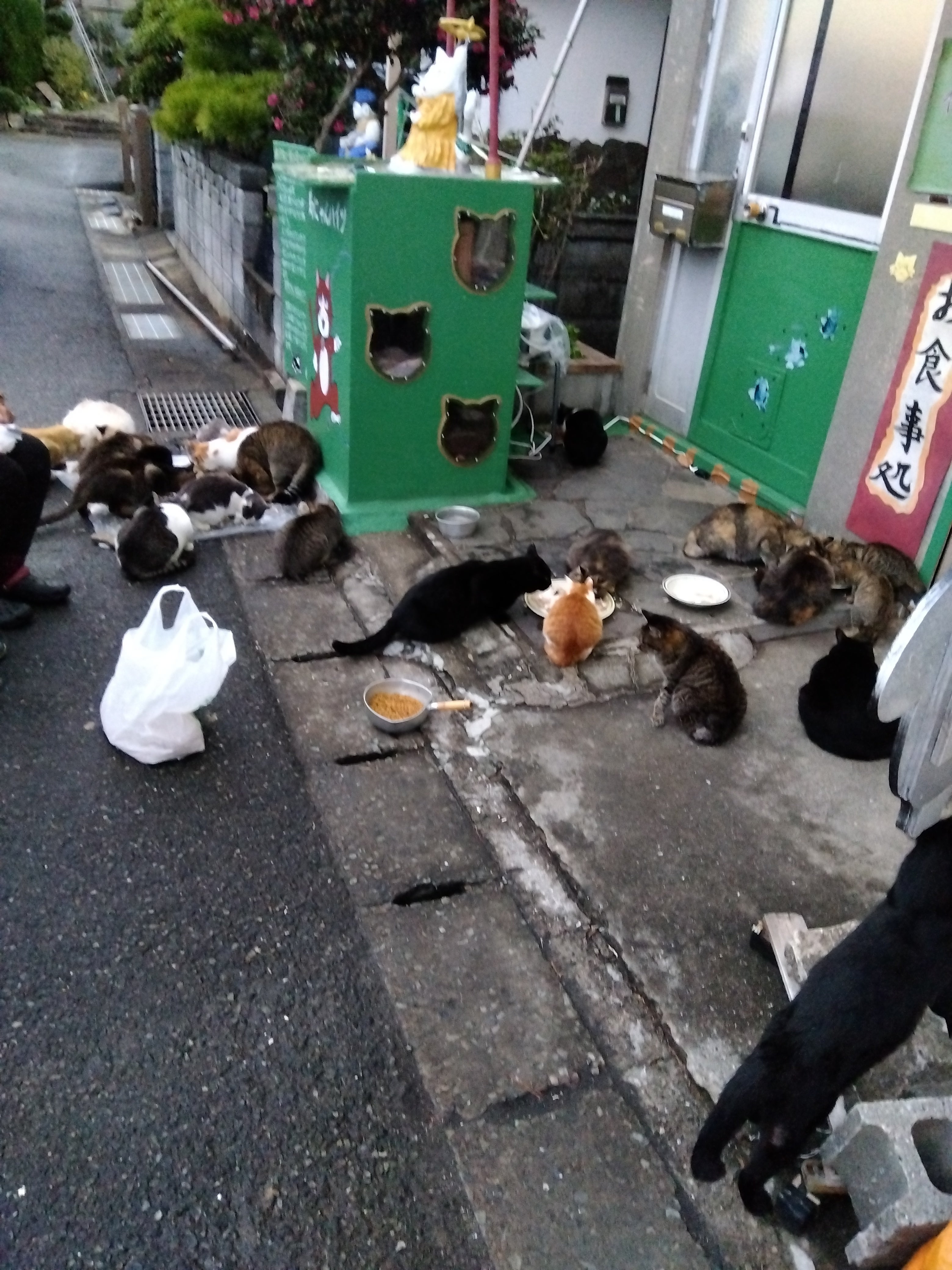 【今年のまとめと進捗状況】 先日は、南国天草でも雪が降りました。 島にゃんハイツには各階に1台ずつ、ペット用ヒーターを設置して電源入れっぱなしにしています。 現在、子猫も3ヶ月位の子猫が3匹ほどいますが、おかげで元気です( *´꒳`*) 毎日、夕方には、押し車を押して島の数カ所で猫の世話をしている猫ばあちゃんが、最終地点として島にゃんキッチン前に持って来てくれますので、押し車に着いて来た猫たちと合流して24匹ほどになります。 この時間に、情報交換したり雑談したりしていますが、ウォーキング中や犬の散歩の島の人達も、足を止めて井戸端会議のようになってきました(笑) 今年は、島にゃんキッチンに来られるお客さんも、猫好きな人達が増え、熊本市内で猫の世話をしている方も来て下さり、少しずつ理解者、応援の声を下さる方も出てきました。 夏から、地元で猫の保護活動をされている大分の方が毎週のように来られて、島の猫のエサやりや目ヤニの治療をしておられますが、その方からの紹介で、天草の市議さんが聞き取りに来て下さり、議会で質問を開始して下さいました。 天草上島に湯島という島があるのですが、現在、猫島として有名になっています。東海大学のグループが、補助金などを活用して、島の猫たちの避妊・去勢手術やワクチン接種、健康管理などを行っています。 この度、そのグループの教授と連絡が取れるようになり、これから情報交換などを行っていけるようになっているとろです。 通詞島の猫たちの避妊・去勢手術に向けての第1歩を踏み出したと実感しているところです。 冬になり、猫たちは保温の為に、ご飯の大量摂取に入っています。 キャットフードが、間もなく底を着きます。どなたか無理の無い程度にフードを寄付して頂けると助かります(>人<;)-----------------amazonほしい物リストhttps://www.amazon.jp/hz/wishlist/ls/1TXZBIZDWYPO9?ref_=wl_share