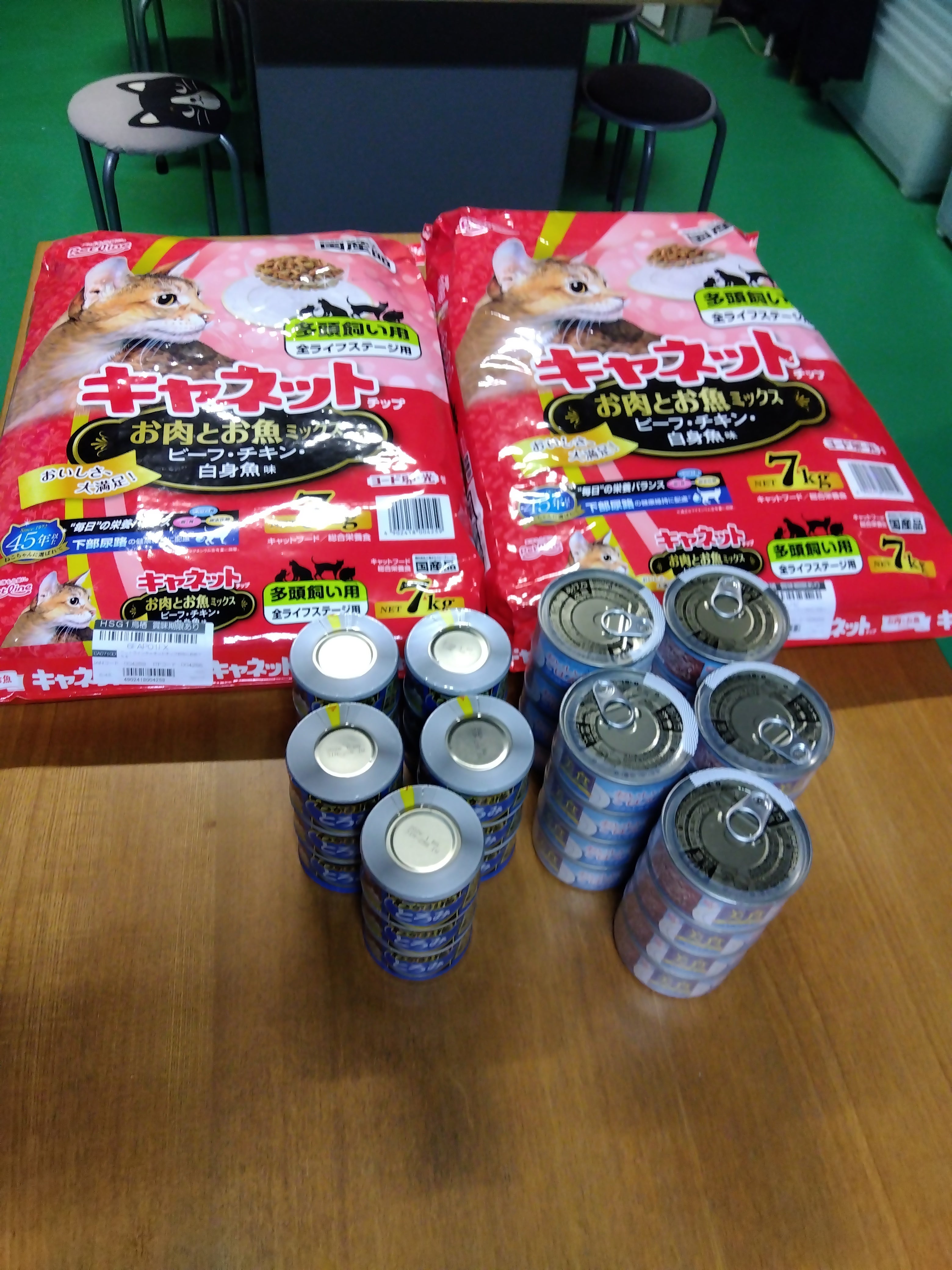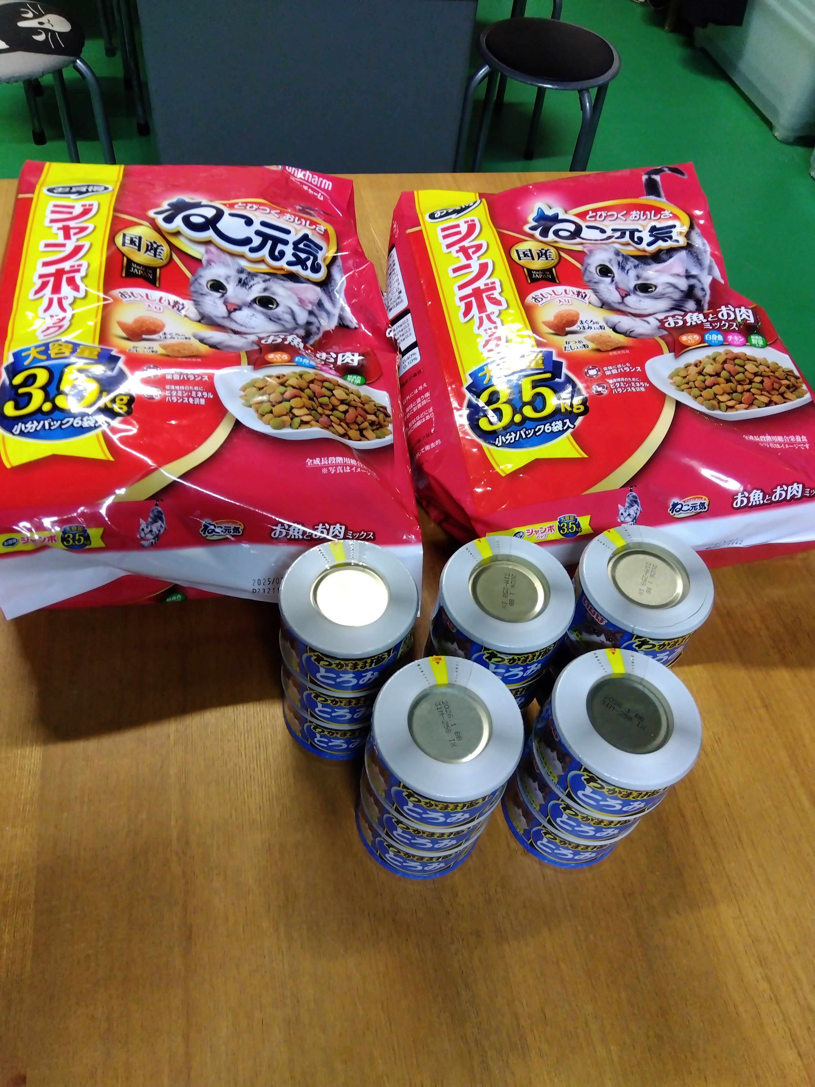 キャットフードが届きました!寒い時間が増えてきました。晴れた日中はポカポカ陽気ですが、陽が落ちると急に冷えてくる天草です。皆様いかがお過ごしでしょうか?キャットフードを頂きましたので、ご報告致します。ねこ元気ビッグ 3.5kg×2わがまま猫とろみ3缶パック×5T.A(名.姓)様、いつも有難うございます。メッセージも嬉しく拝見致しました。