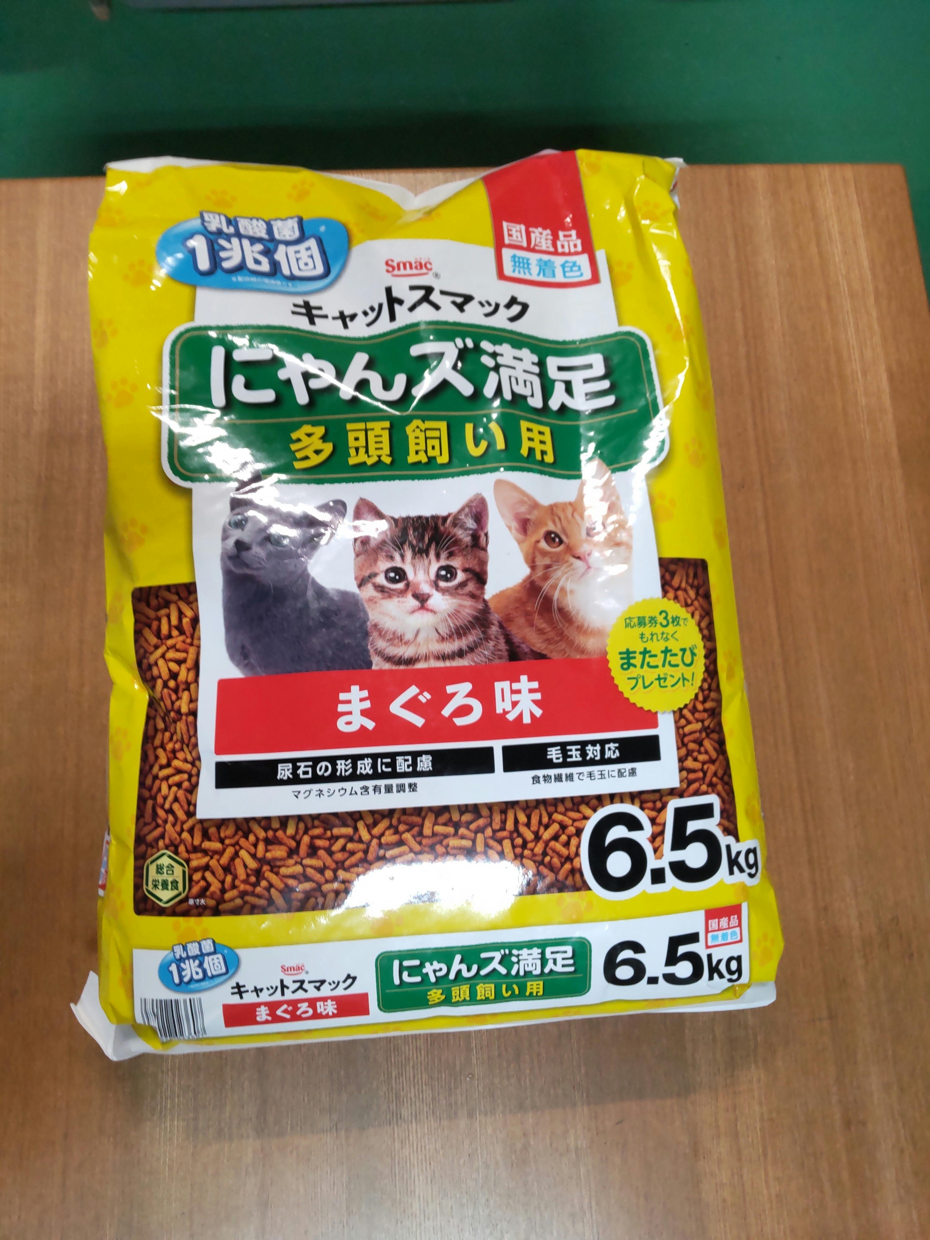 キャットフードが届きました!にゃんズ満足まぐろ味6.5kg×1伝票がありませんでしたが、先日ご支援下さったJ,N様の、キャットスマックとセットになっていた分だと思われます。J,N様、いつも有難うございますm(_ _)m