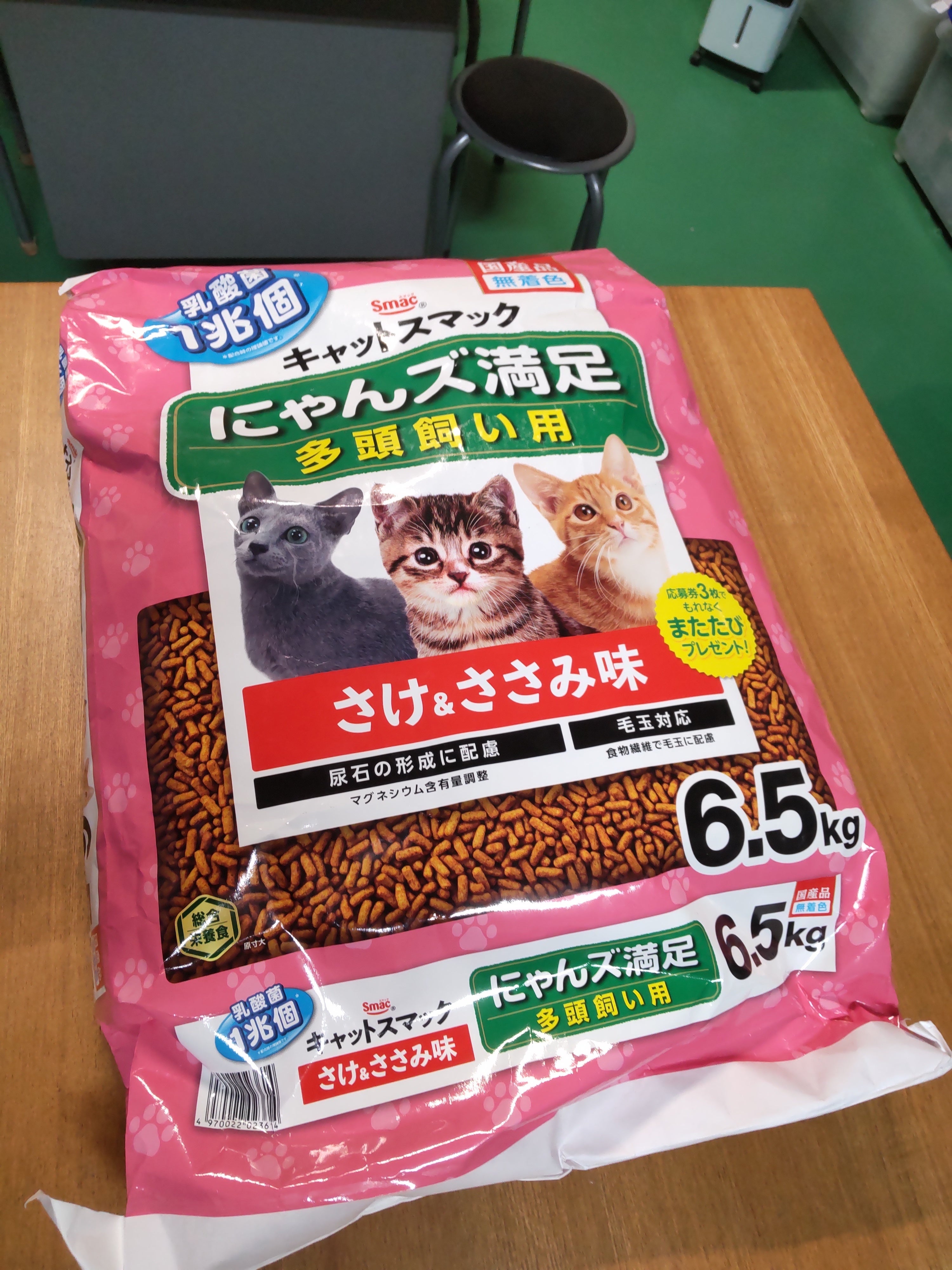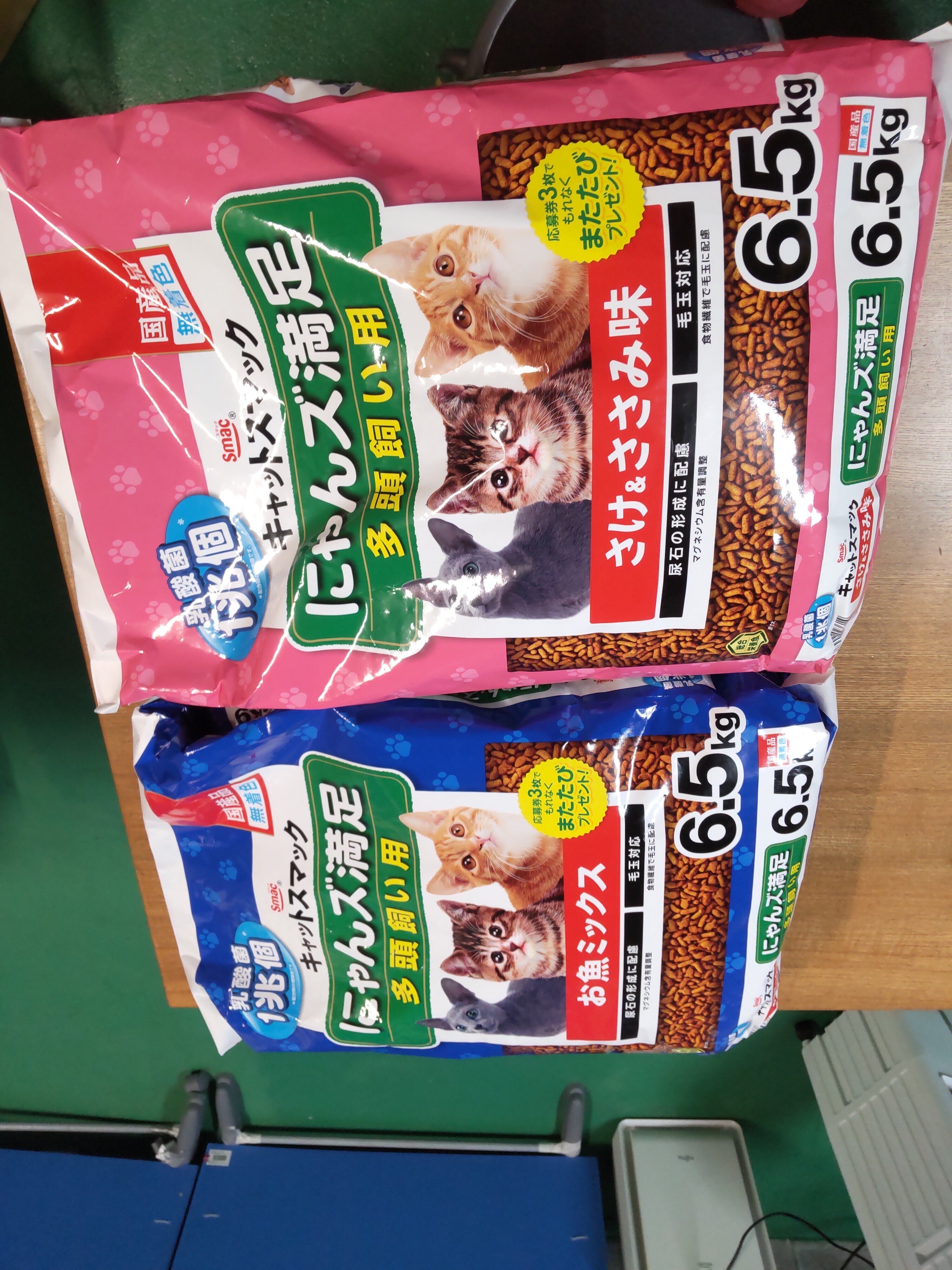 キャットフードが届きました!にゃんズ満足お魚ミックス6.5kg×1にゃんズ満足さけ&ささみ6.5kg×1N,H様、有難うございましたm(_ _)mおかげさまで、皆よく食べて、酷暑の中を頑張って暮らしています。皆様も、どうぞこの長い夏の後半、ご自愛下さい。