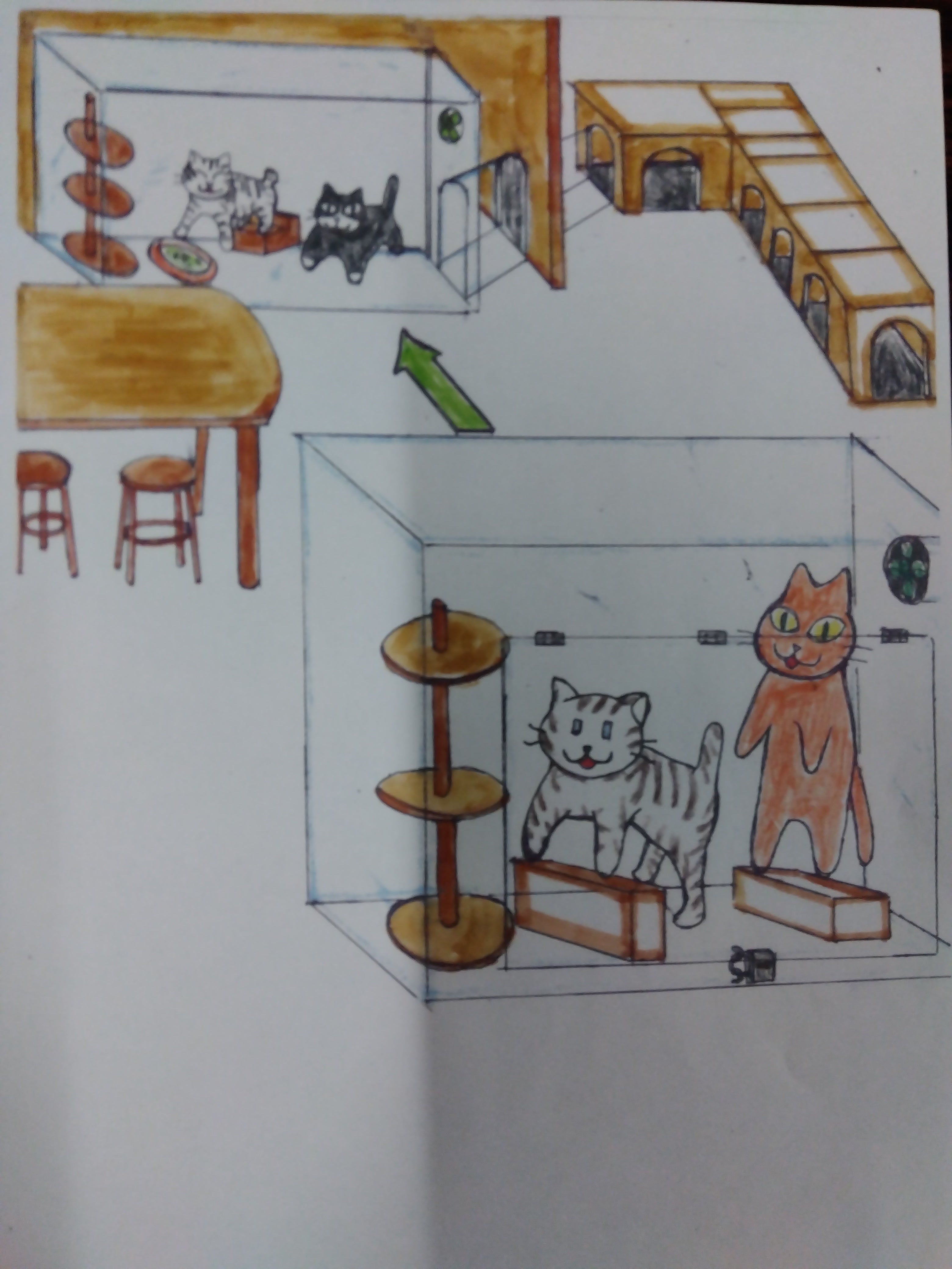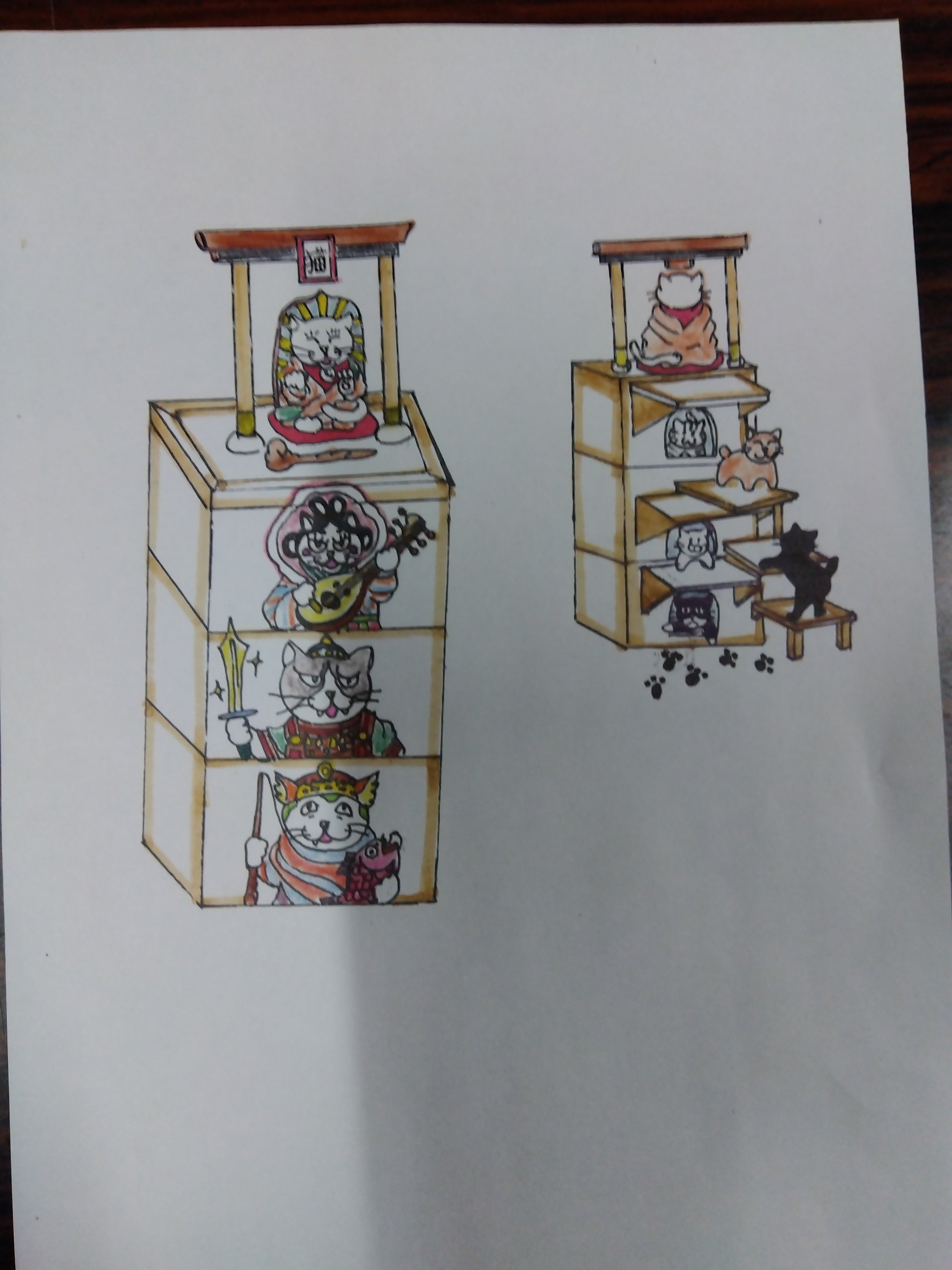 また、店のイートインルームに透明のアクリル板で、衛生面に影響しないよう密閉したスペースを作り、猫が遊びに来たりくつろいだりする様子を、店内で観察できるようにしたいと思います。そして、店の前には猫のオブジェを作成して賽銭箱を置きオリジナルの猫神社を設置しようと計画しています。