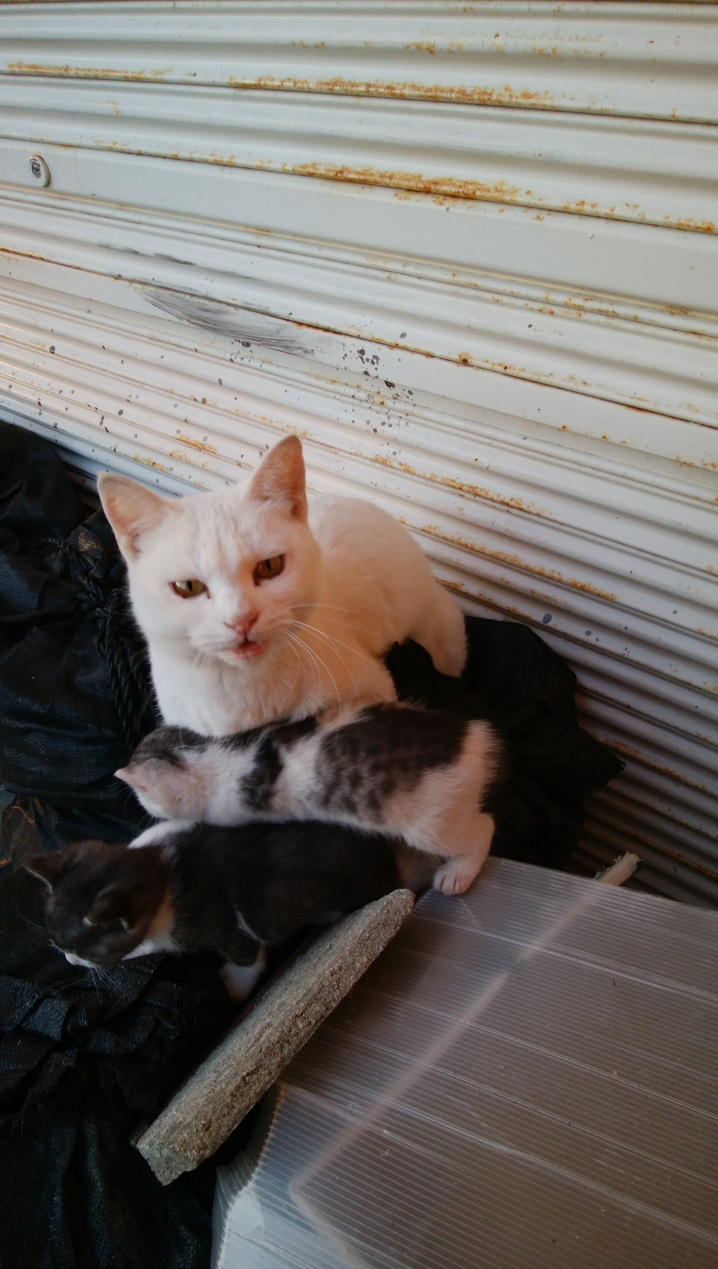 ちょうど、近所を転々としていた子育て中の白猫(島に捨てられた猫)がいたので、試しに授乳時に、その脱落した子猫を預けてみました。