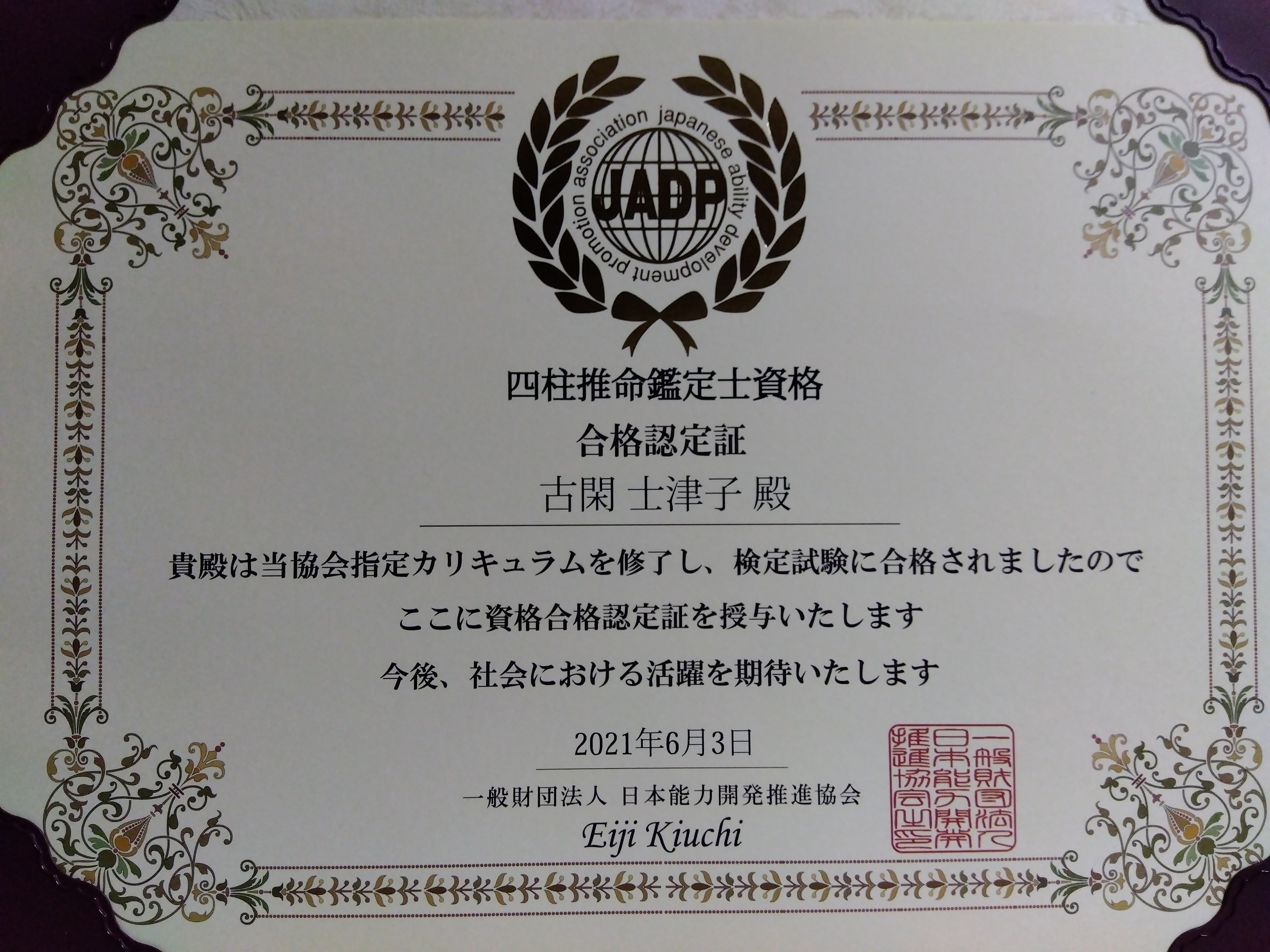独学と通信講座で四柱推命の泰山流で基礎を固めた後、先生について子平流を学びました。