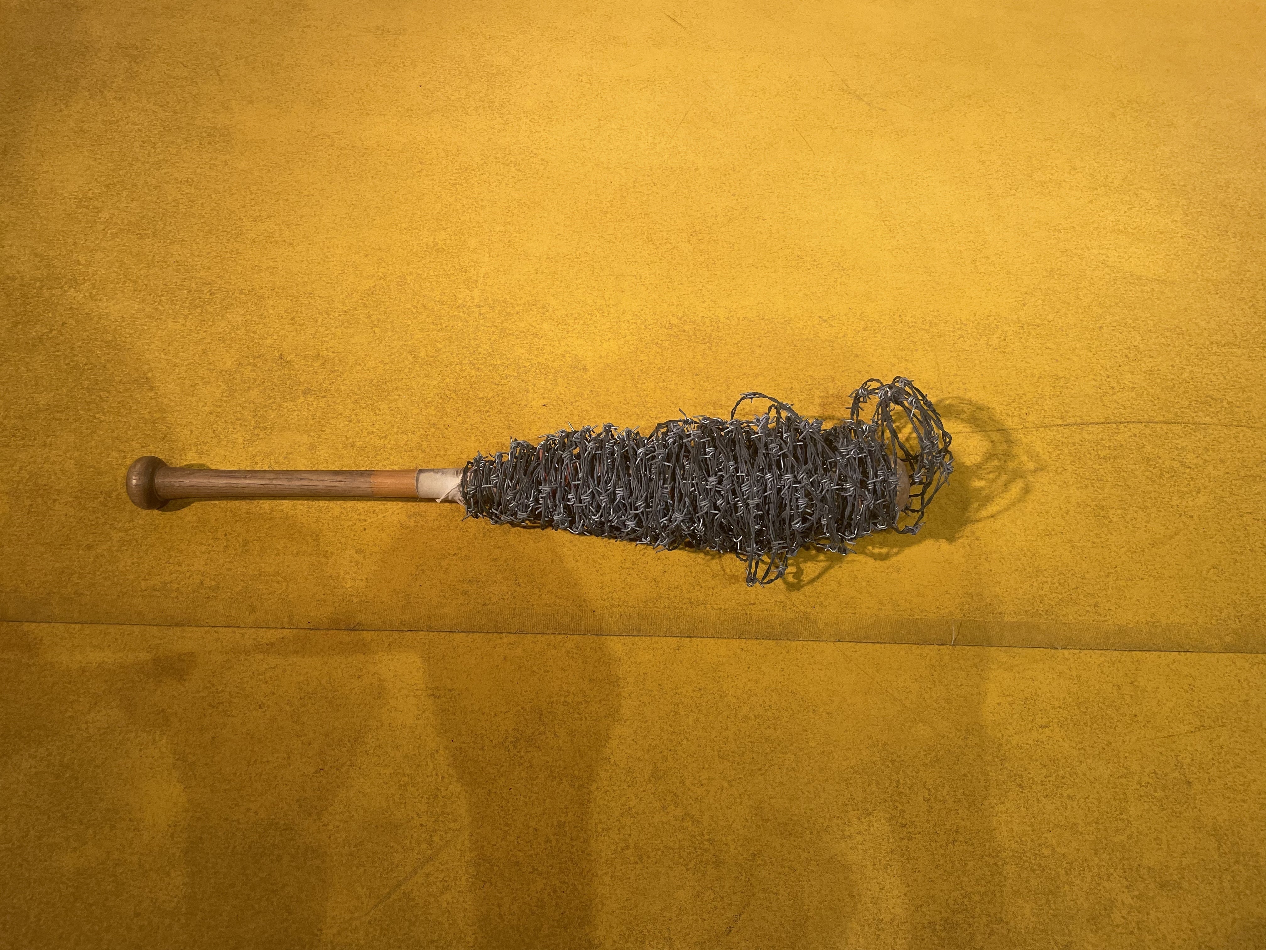 ※画像は地下闘技場に置いていただいている有刺鉄線バットです。3ヶ月に一度の定期興行をしていただいているCRAZY UNIONの戸井マサル選手の私物なんですよ!