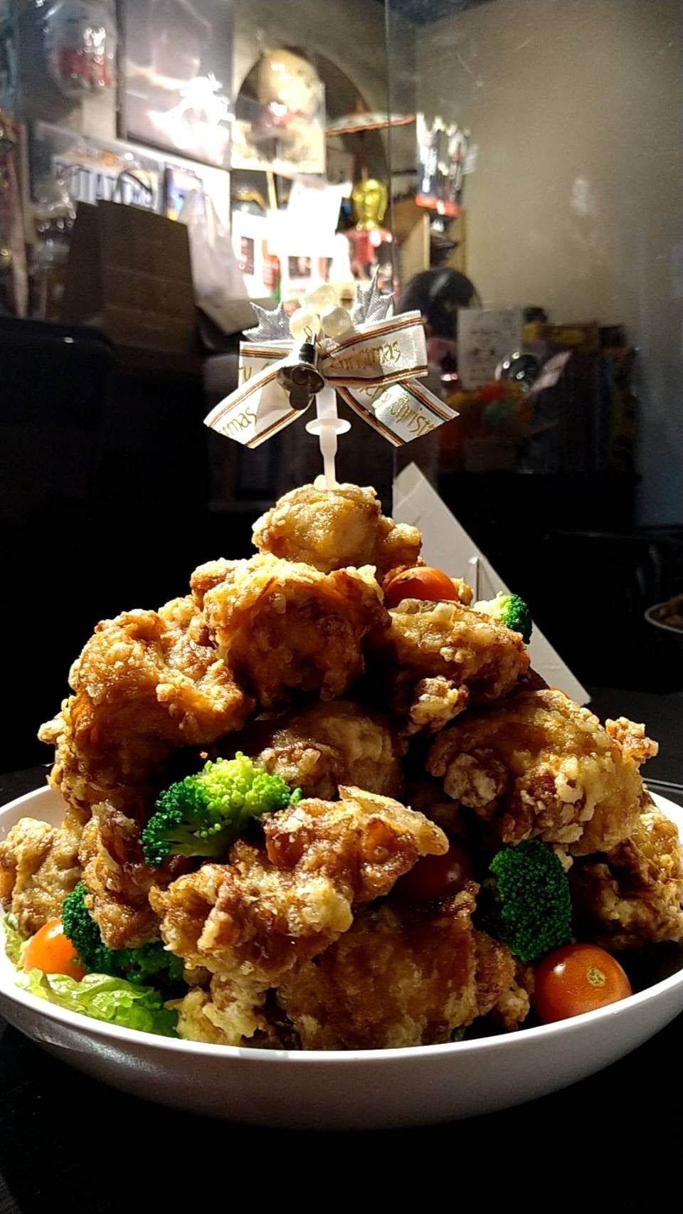※画像は25日に依頼されて作ったやれんのか?タワー(鶏のから揚げ山盛りツリー)です。事前にご相談いただければイベントでこんなのもお出しすることができますよ!