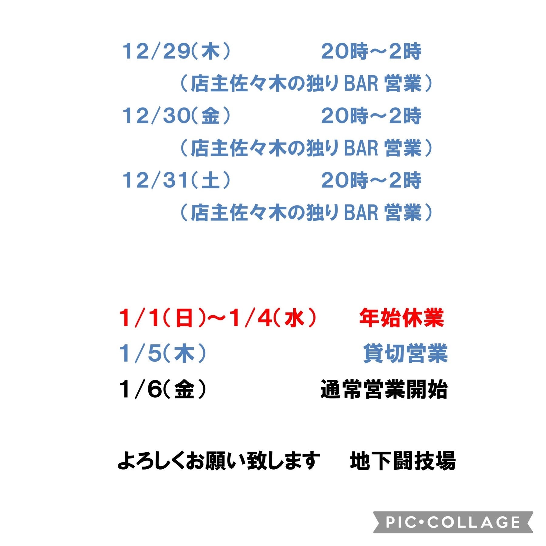 1/1(日)〜1/4(水)年始休業