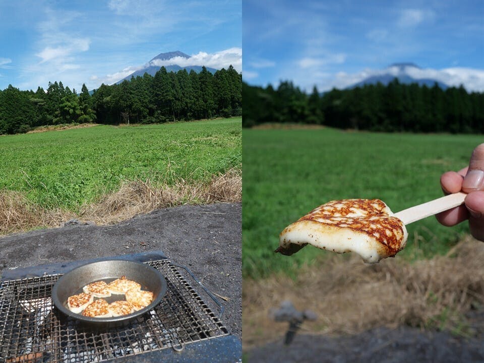 厚底クッキングプレートと溶けないチーズとお互いに相性がばっちりで、話も盛り上がり、キャンプ場のオーナー中島監督から「このフライパンはキャンプ道具だ!」とのお墨付きを頂きました。