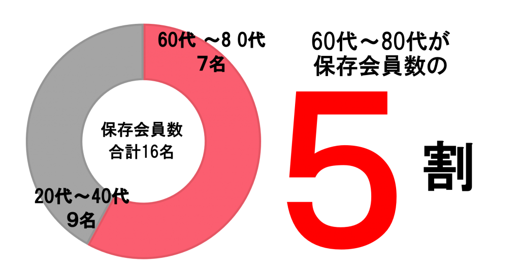 日下部太鼓保存会も16名(60歳以上:7名 40−20歳:9名)と高齢化と保存会員数の減少により、今後数年以内に有効な対策を講じなければ消滅は免れません。