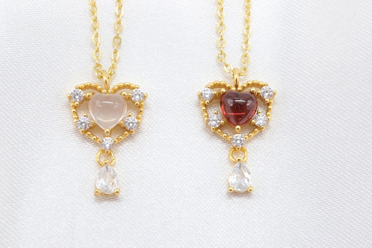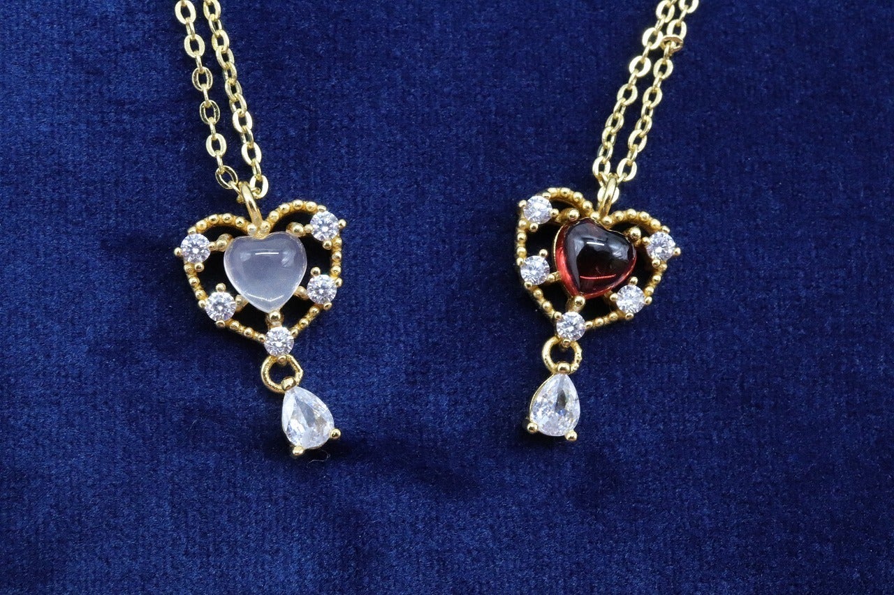 今年もクリスマスシーズンが近づいてまいりました。そこで、クリスマスにピッタリのハートモチーフネックレスをご用意させていただきました!ストーンには先にご紹介いたしました「ローズクォーツ」「ガーネット」を使用しております。