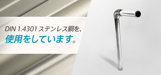 【タートルネックストロー】は高級ステンレス食器にも使われるDIN 1.4301 ステンレス鋼(JIS規格のSUS304に相当)を使用しています。