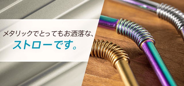 【タートルネックストロー】はステンレス製らしく、高級感溢れるメタリックカラーがとってもお洒落なストローです。