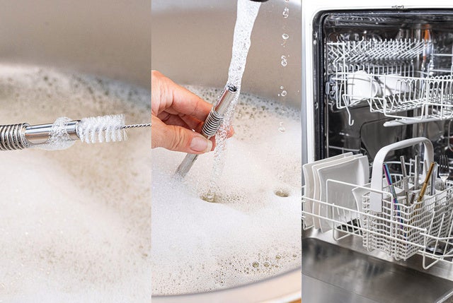 食洗器を使用する際は、ストローをまっすぐ伸ばした状態で立てかけて洗浄してください。