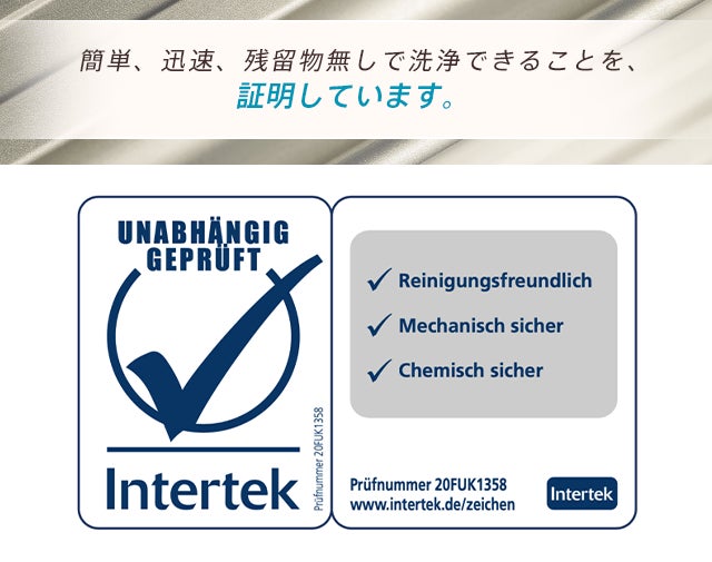 どれだけ清潔に汚れが落とせるかも、国際認証機関であるIntertekでガラス製のストローと同様に簡単、迅速、残留物無しで洗浄できることを証明しています。