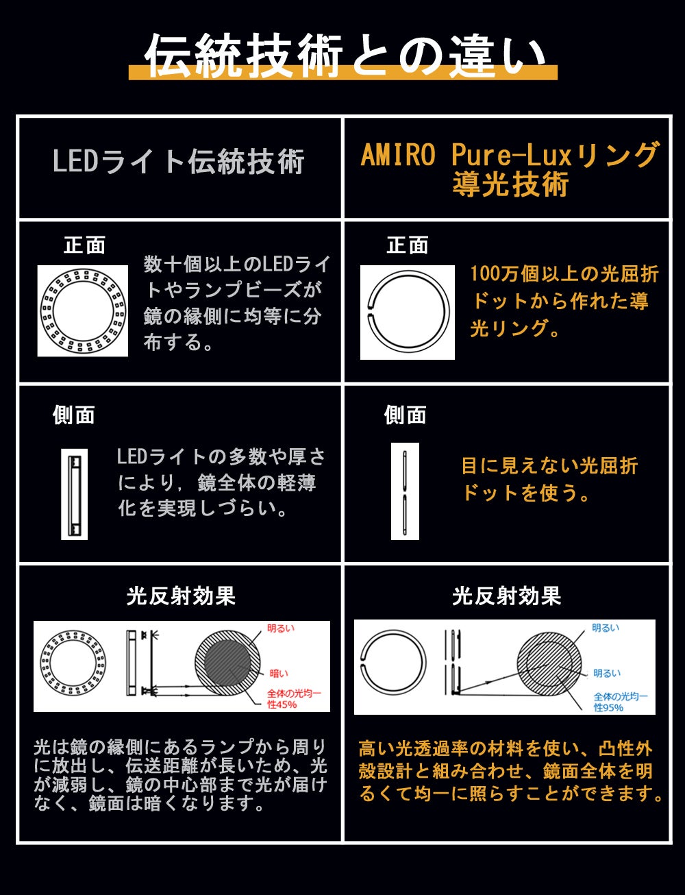 導光技術:PureLuxリング導光技術(特許取得)