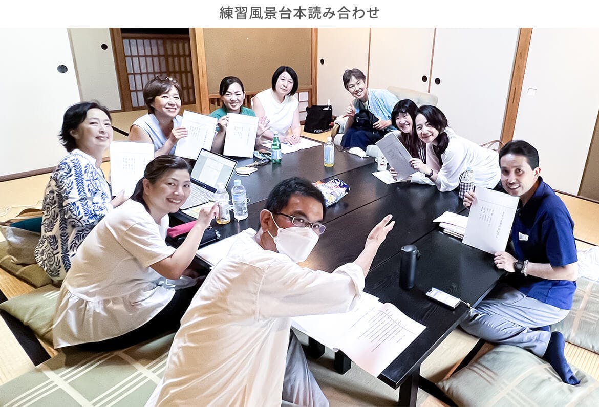 このプロジェクトに賛同し、練習に参加しているメンバーは多様性に満ちています!経営者や教師、元スポーツ選手に占い師、食育講師に主婦、マナー講師からクレーム対応のプロ、そして10代のボランティアスタッフまで、年齢も性別も職業もさまざまです。 演出家・渡辺克己さんの指導の下、真剣に稽古を重ねてきました!