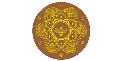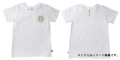左胸と袖にロゴデザイン、バックに蜂の巣モチーフの六角形チャクラ刺繍入り