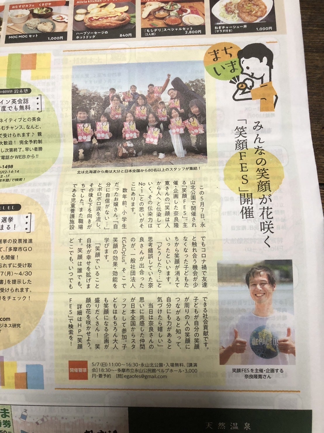 先日、多摩地域紙の「もしもし新聞」に『笑顔FES』のことを掲載していただきました。