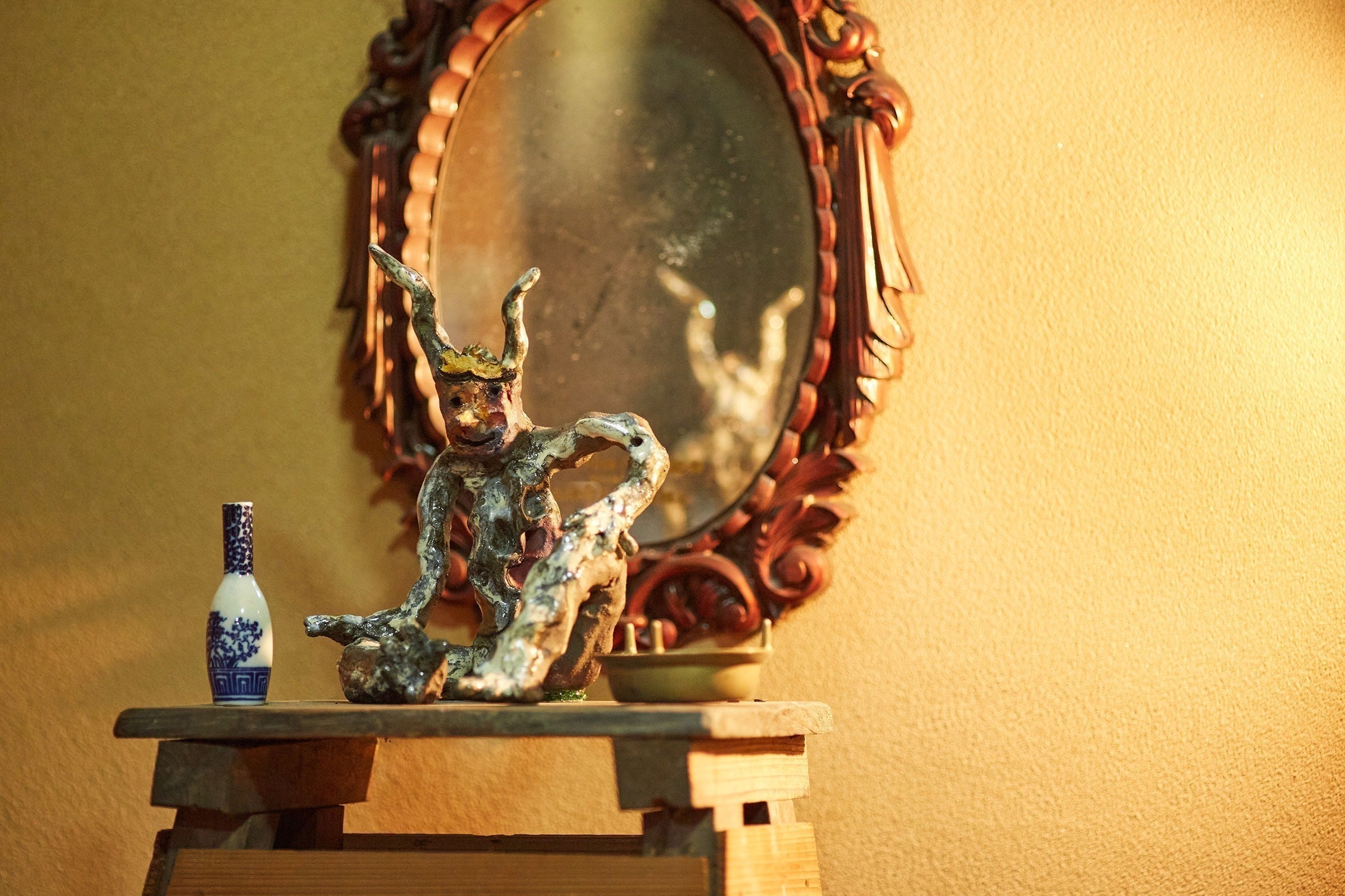 展覧会のキュレーターは合同会社galleryMainの山崎 裕貴が担当します。Plot Art Schoolの主任講師を務めたり、ギャラリーではユーモアのある挑戦的な企画を生み出しています。千野で展覧会をすると決めた日から、千野と京都を行き来し関係する資料を読み漁るなど、時間をかけて準備をしている姿を見てきました。