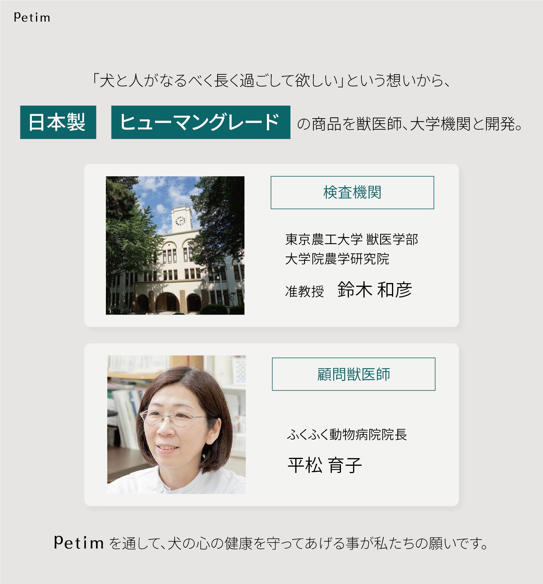 Petimは犬と人がお互いに癒し合える環境を目指しています。
