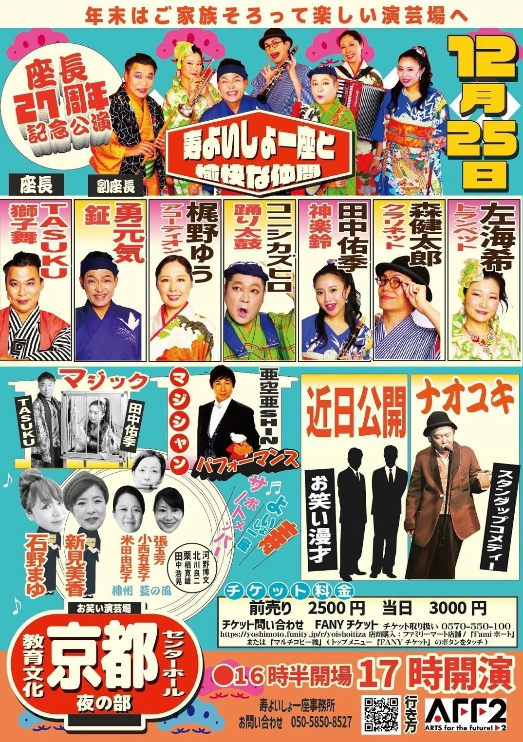 吉本興業所属の有名人にもゲスト出演して頂き、「寿よいしょ一座」を多くの人に知っていただきたい。この公演の成功をキッカケに「寿よいしょ一座」を全国の人に知ってもらいたいです!
