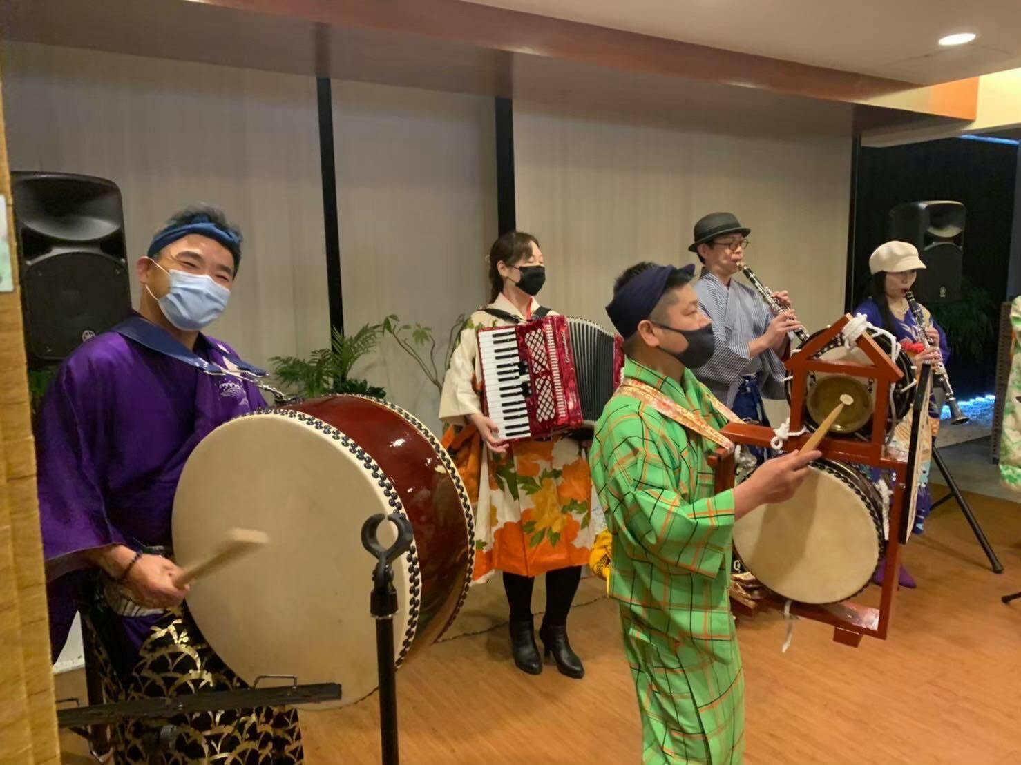 スタート時は獅子舞の演舞をやっており、獅子舞、鐘、篠笛、和太鼓、締め太鼓、神楽鈴、といった構成で、新春イベントや地域のお祭り、高齢者施設などで披露させていただいておりました。
