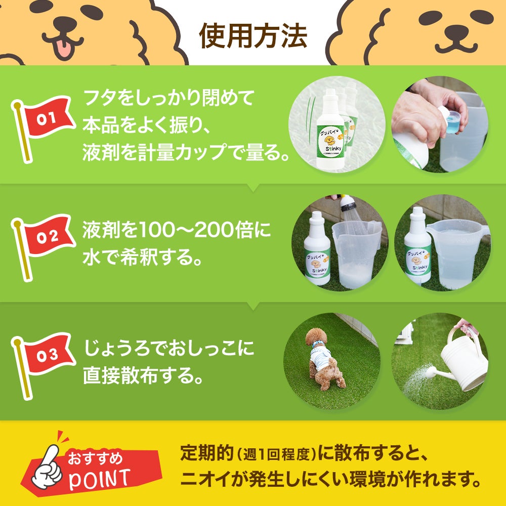 お庭に敷いている人工芝の上でおしっこやウンチをするペット。