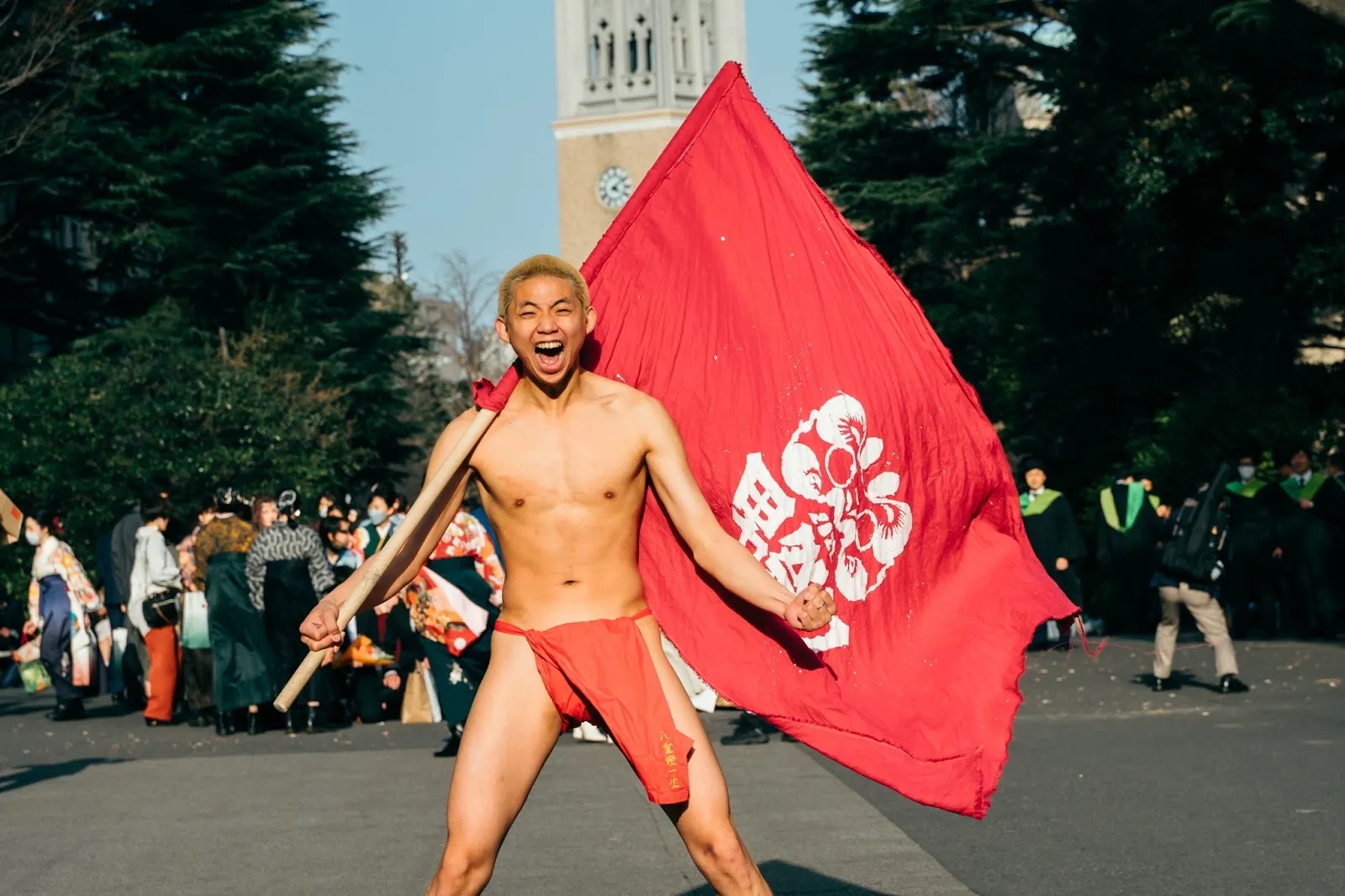 早稲田祭のステージで、赤褌一丁を身に纏い、本気で”夢叫び”をする。それが弊団体、男祭りです。