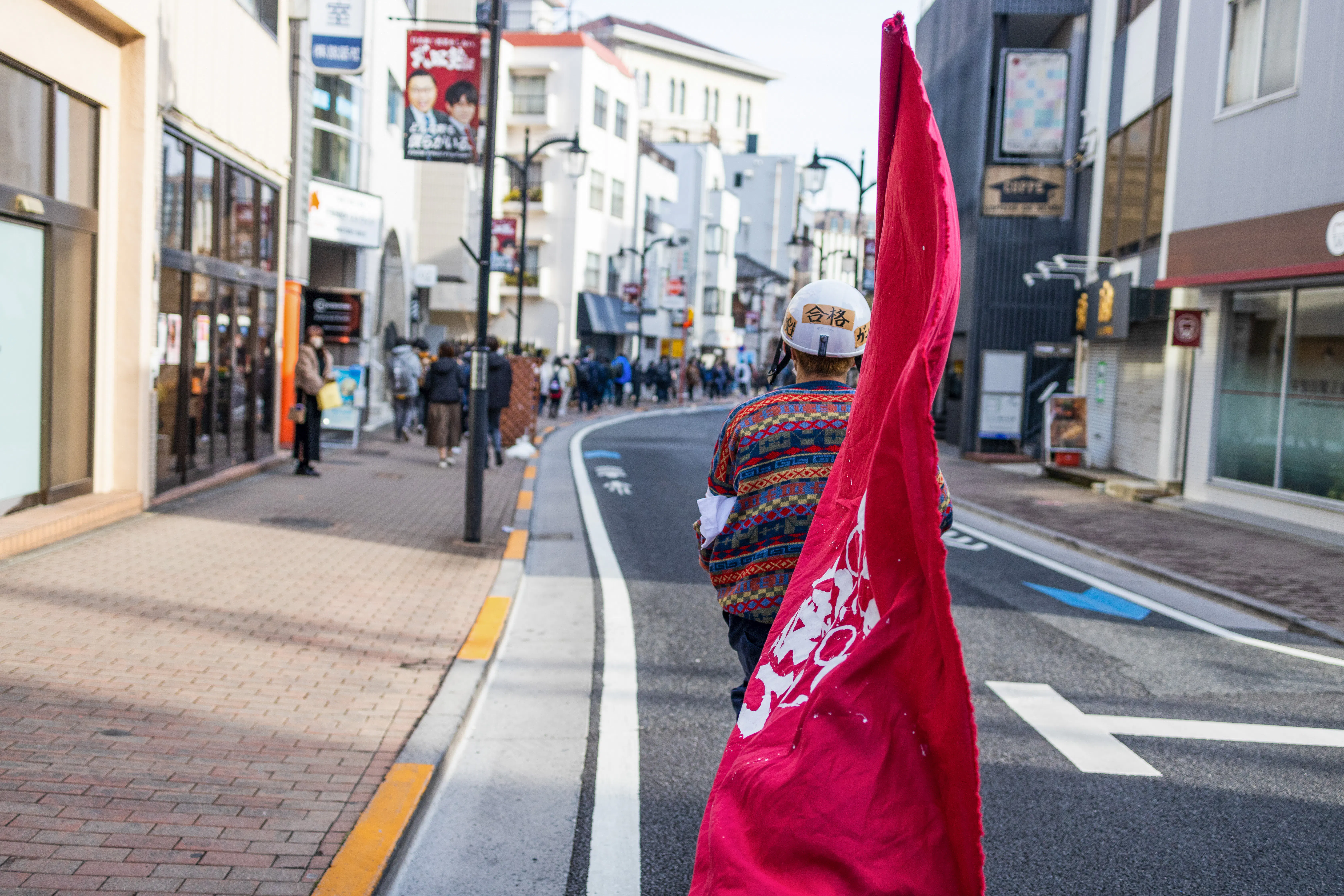 早稲田名物の一つ「受験」、一万人の長蛇の列をなして不安と期待を背負った受験生、真剣な表情で栄光をつかみに行く彼等彼女等に精一杯のエールを送りました。