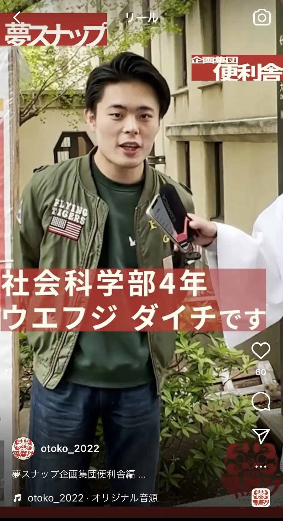 長野 奨 (右2番)文化構想学部5年 元踊り侍 つらみ。男祭り2021クルー「流浪のスケベ侍」