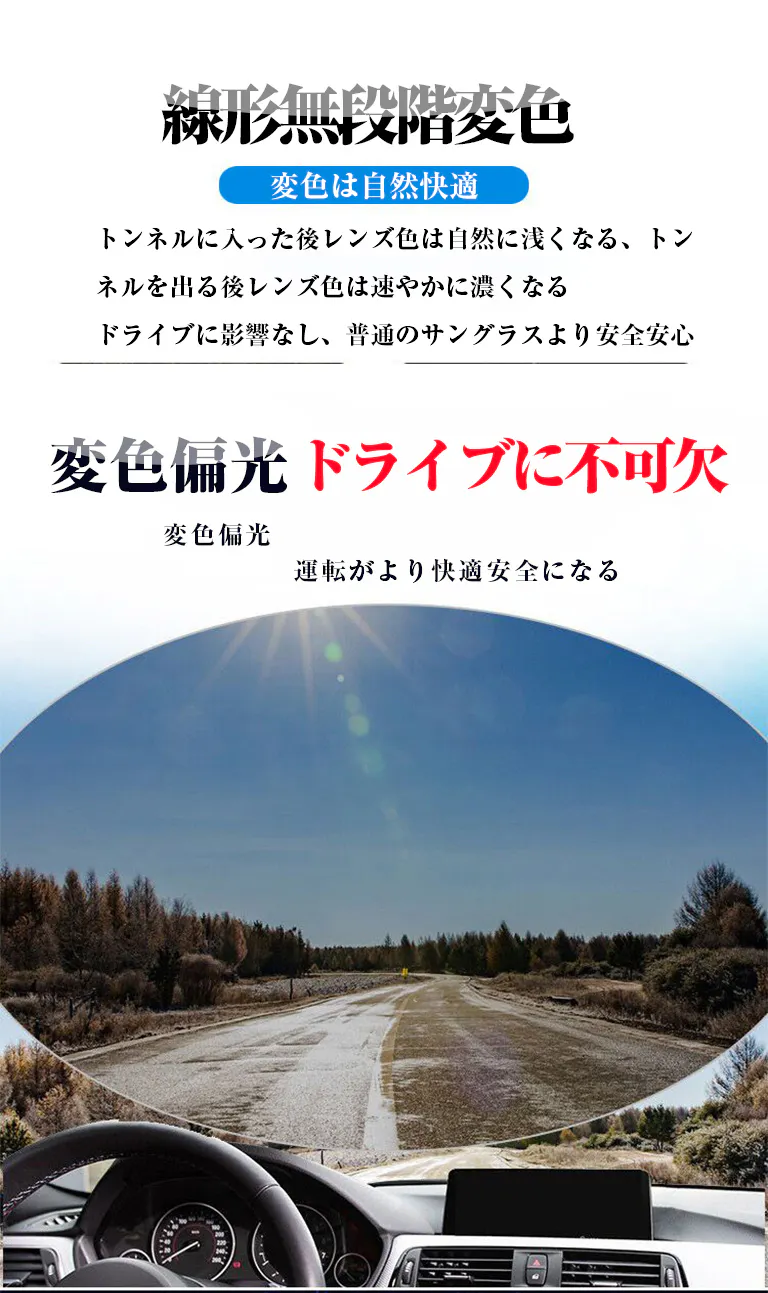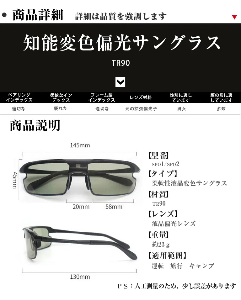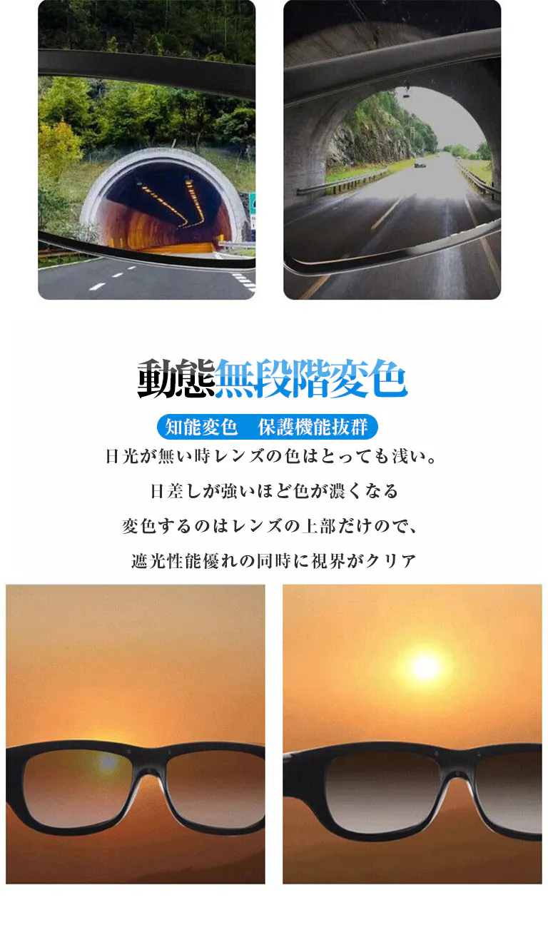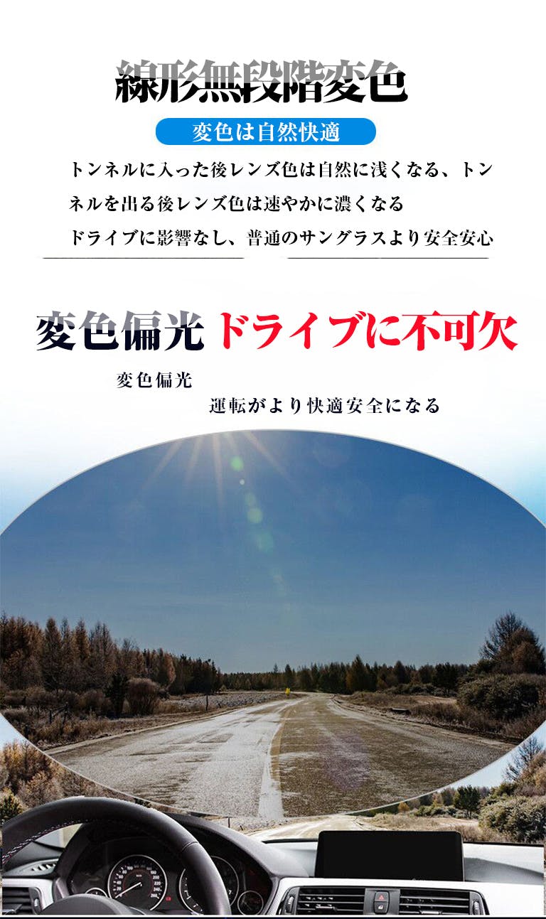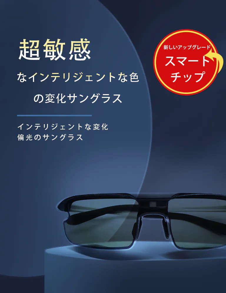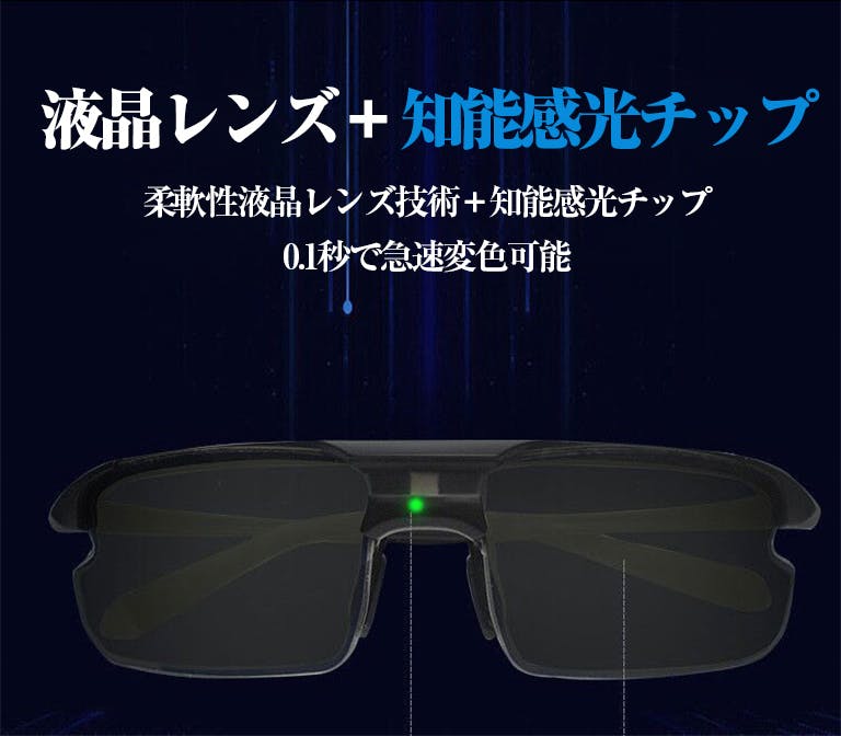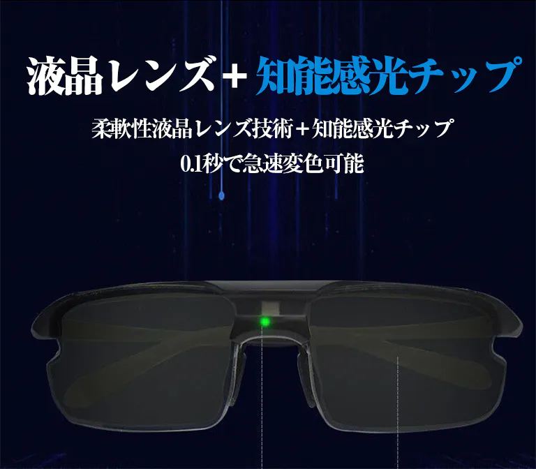 智能感光変色偏光サングラス、スポーツ/運転/自転車/釣り/登山などに適応。柔軟式液晶パネル、0.1秒智能無極変色