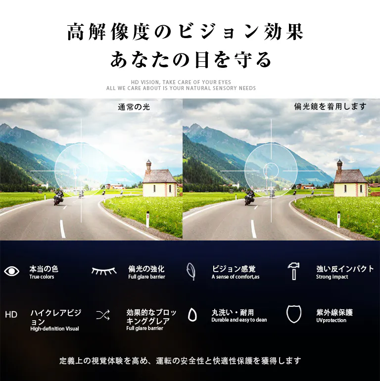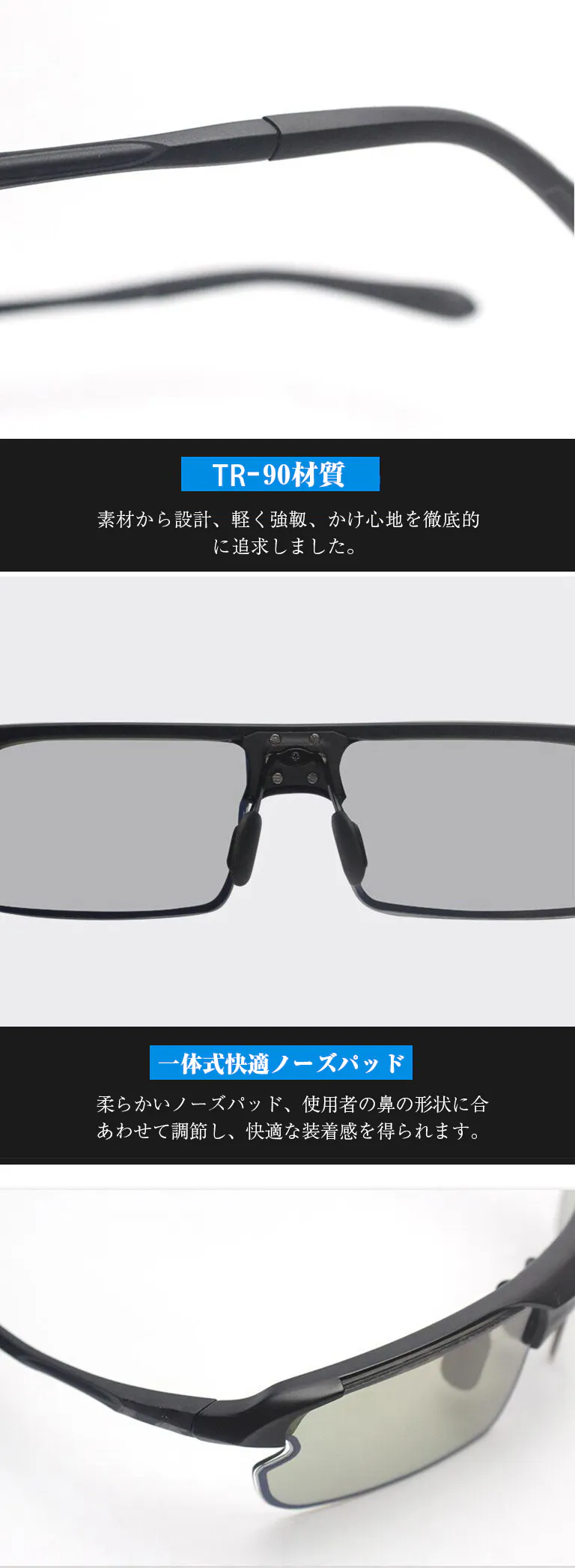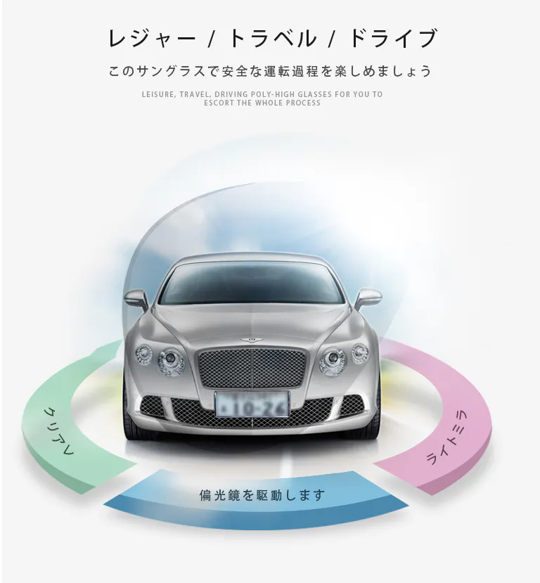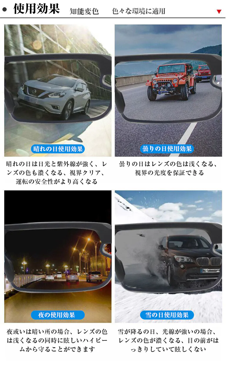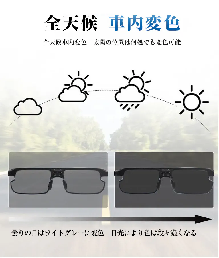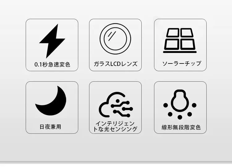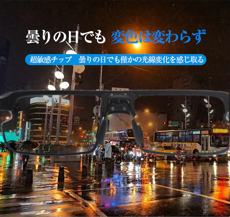 智能感光変色偏光サングラス、スポーツ/運転/自転車/釣り/登山などに適応。柔軟式液晶パネル、0.1秒智能無極変色