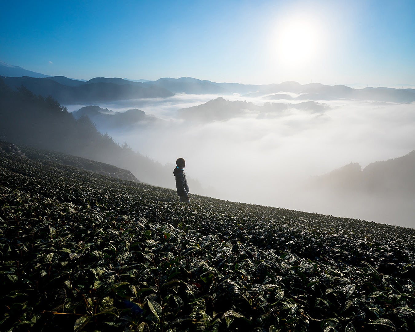 静岡県のド真ん中、目の前には日本一の富士山と駿河湾、早朝には雲海が眼下に広がる、標高350mの山間部「両河内」の急傾斜な茶畑で、バカ美味い日本茶を栽培しています。