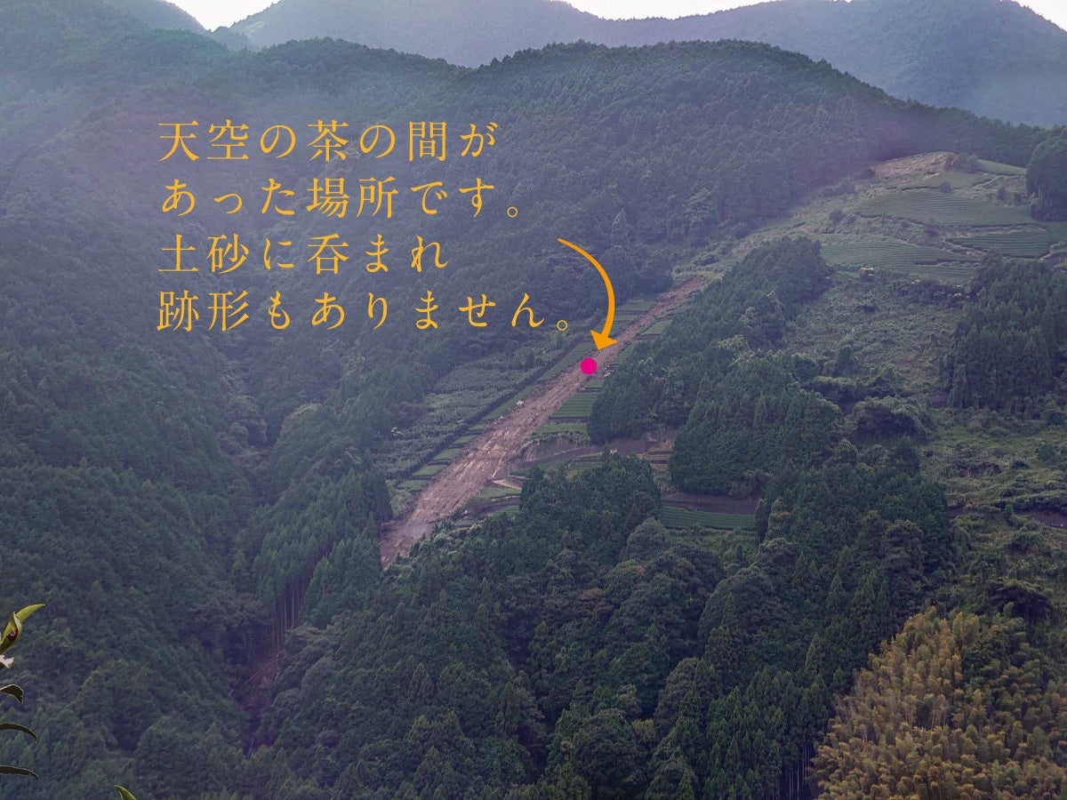 初めてお会いした頃から、いつもまっすぐに、そして楽しそうにお茶作りの話をしてくださる次郎さん。その姿にいつも元気をもらっている一人です。今回、台風の被害で、多くの人が訪れ、お茶を飲み、癒された場所『天空の茶の間』が土砂で流れてしまったと聞いた時、しばらくショックで動くことができませんでした。