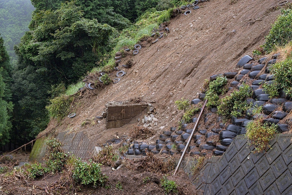 土砂崩れは、農道や山林をものみ込んだ。