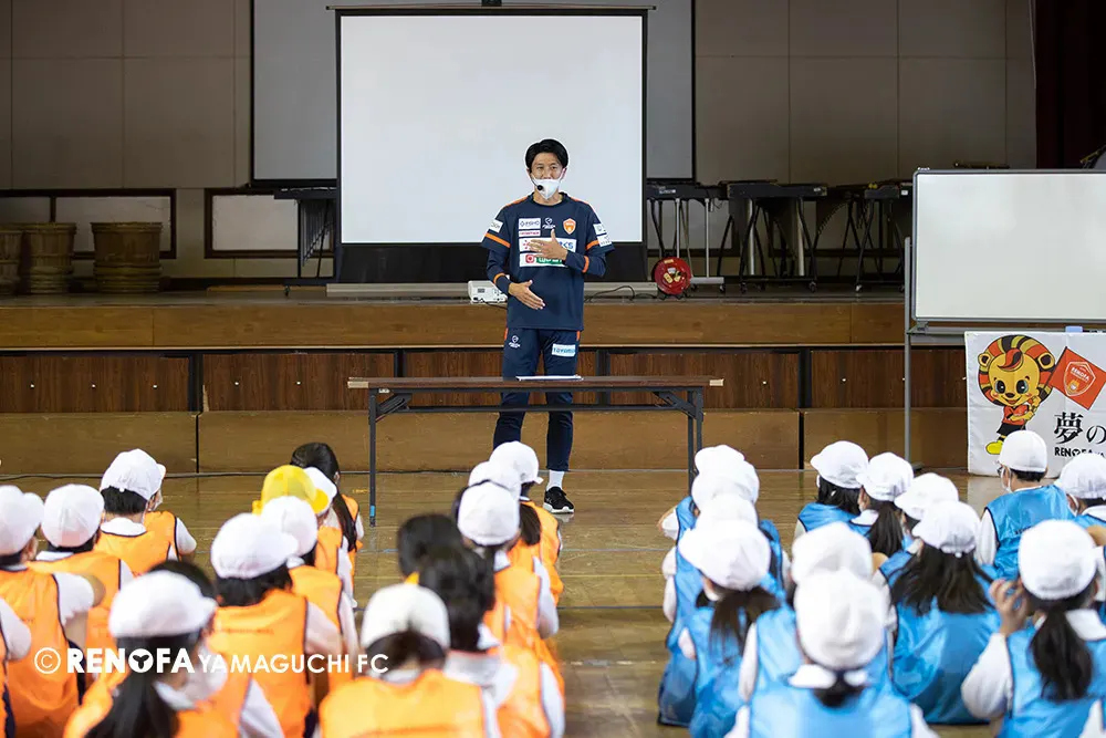 「オール山口J リーグで地方創生、まちづくりパートナーシップ包括連携」に基づく官民連携の取組み、『レノファ山口「夢の教室」 プロジェクトPresented by獺祭』では、